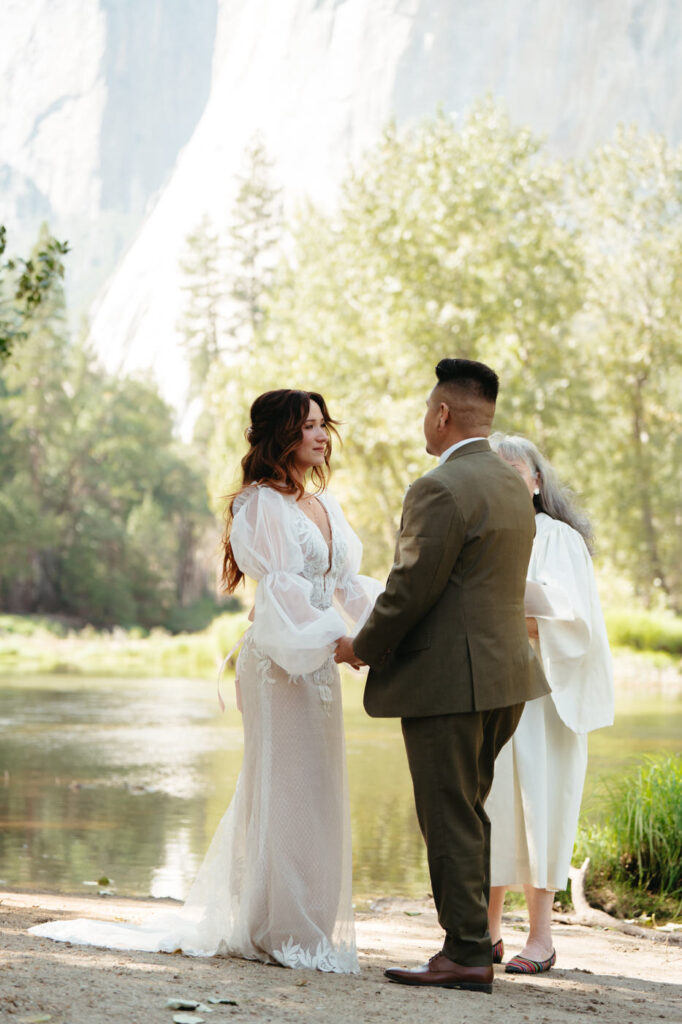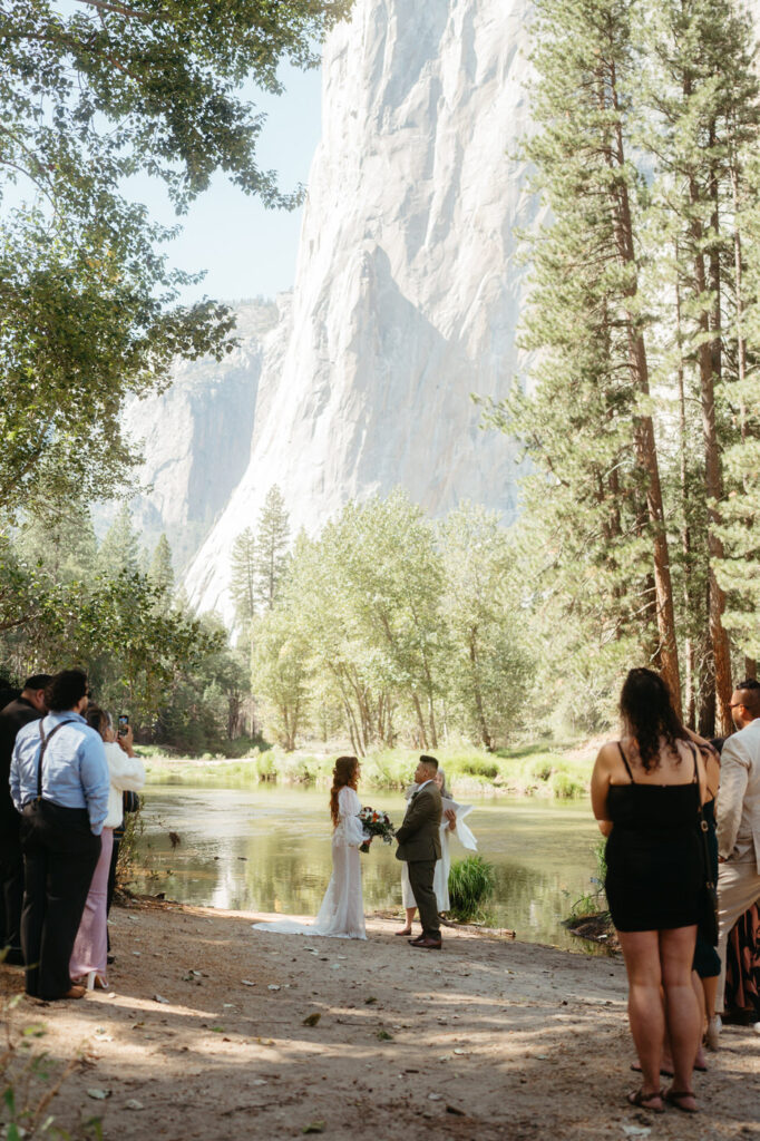 We created a timeline that balanced their ceremony with family and their desire for private exploration time. Since they chose September, we helped them take advantage of beautiful fall weather while avoiding the peak summer crowds. We also planned around Yosemite’s geography, locations like Cathedral Beach and Glacier Point require strategic timing to maximize the experience without feeling rushed.