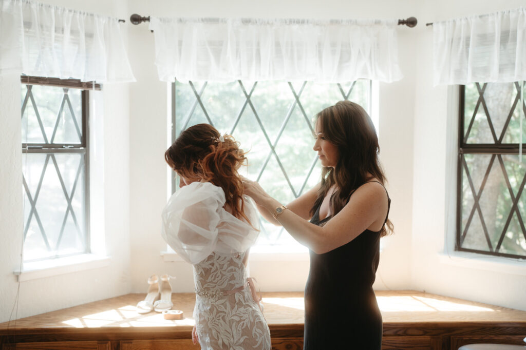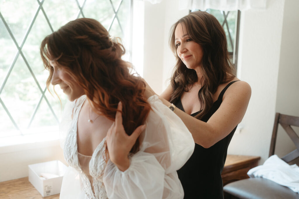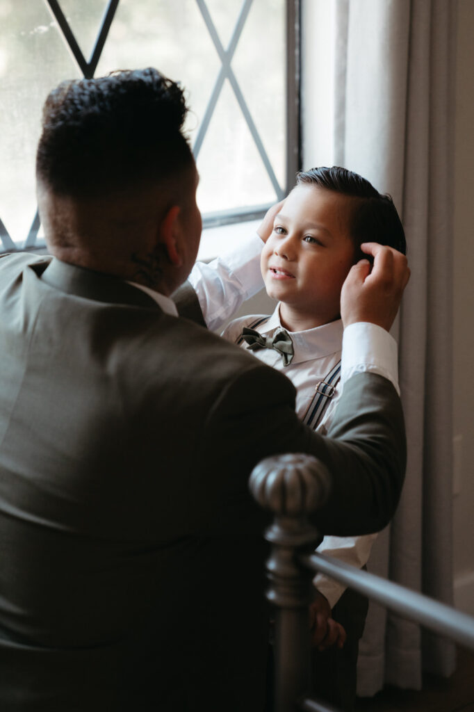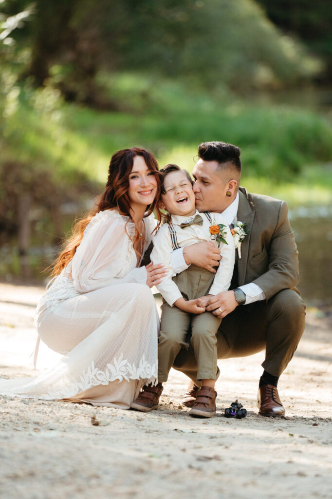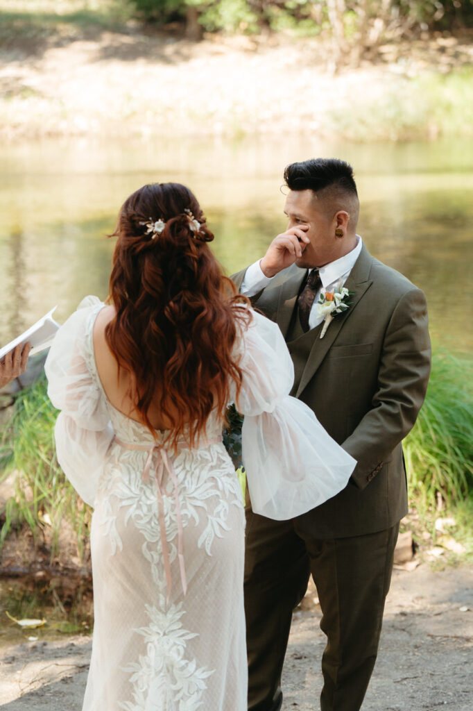 Their day started at their beautiful Airbnb getting ready with family. Eva got ready with her mom and their adorable pug Ygritte while Arturo shared special moments with his son. Then they had their first look in the forest behind the backyard – when Arturo saw Eva in her glorious gown he laughed and cried and held her tight. Having two photographers is so helpful for moments like a first look, Micah photographed Eva while Sammie captured Arturo’s reaction using a fast shutter speed to catch every emotion.