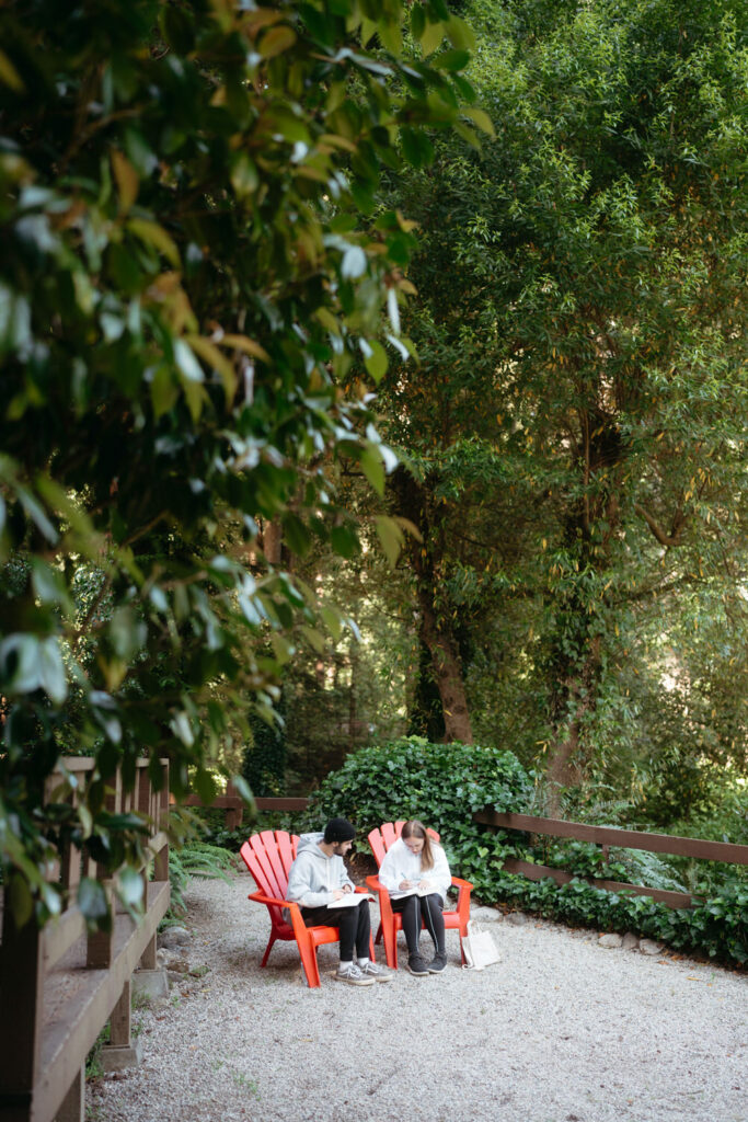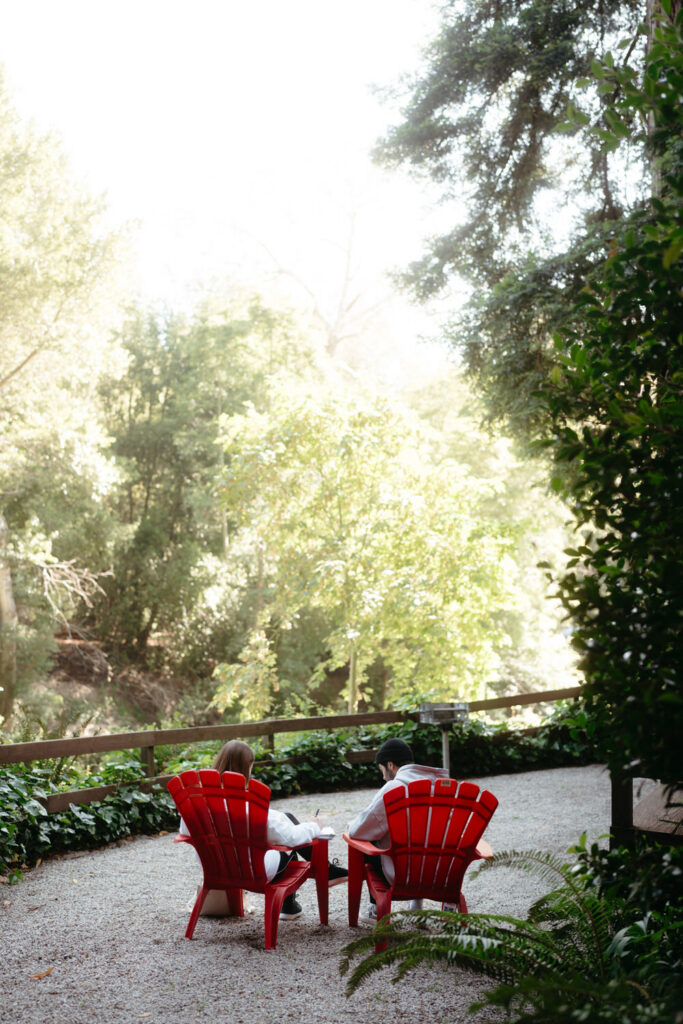 We positioned them so the light filtering through the trees landed right on them, creating that ethereal glow that makes the redwoods so magical.