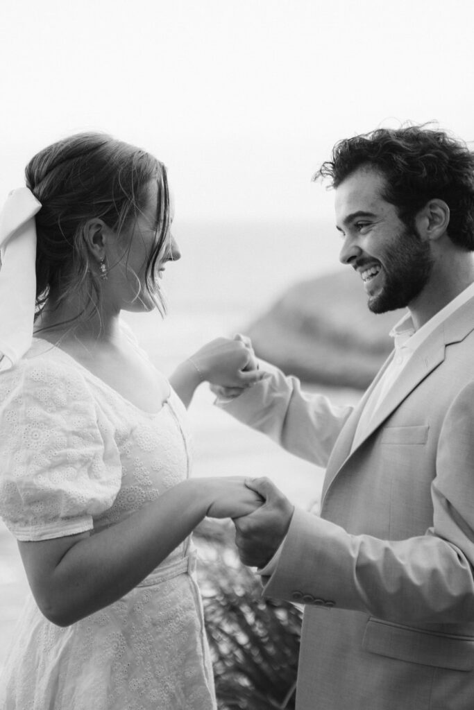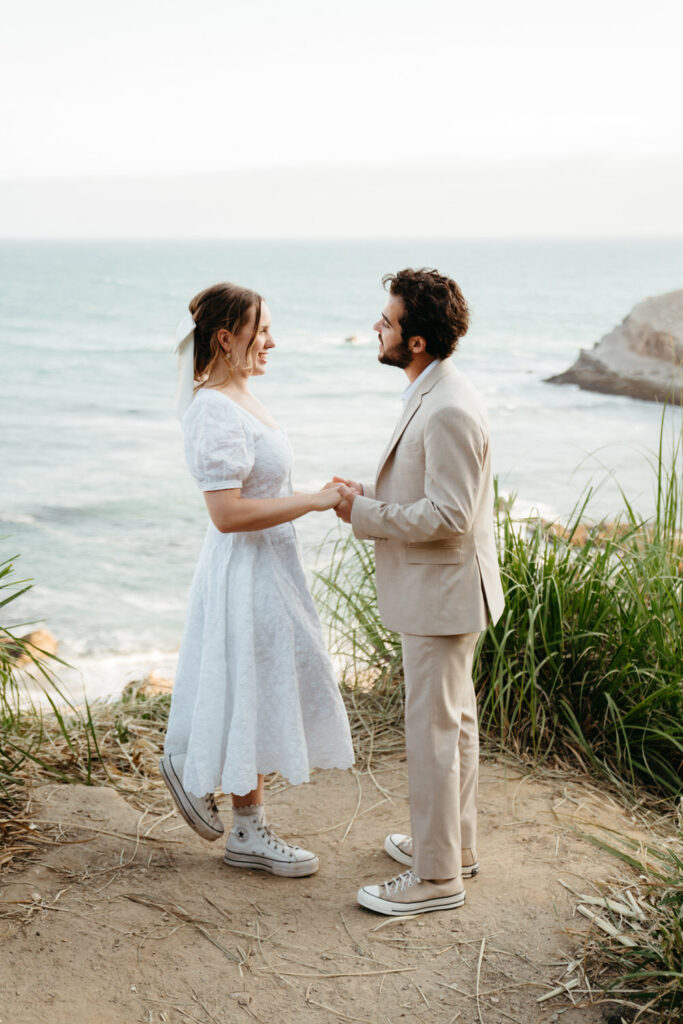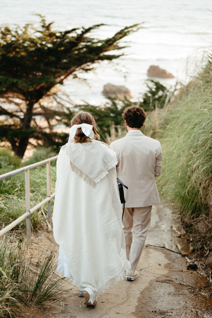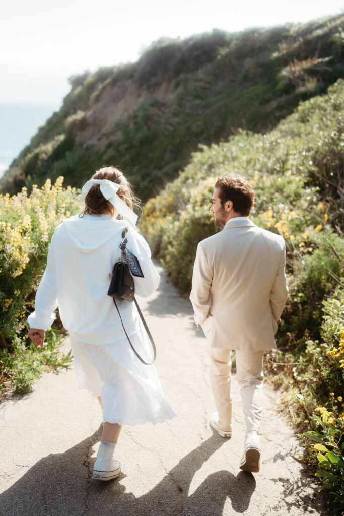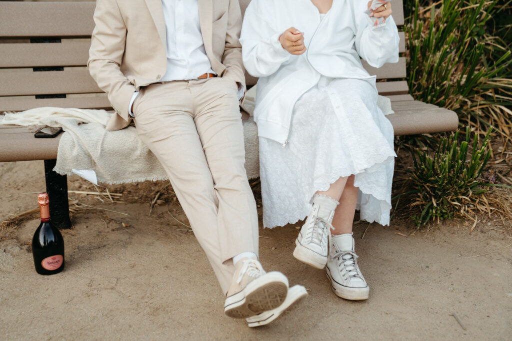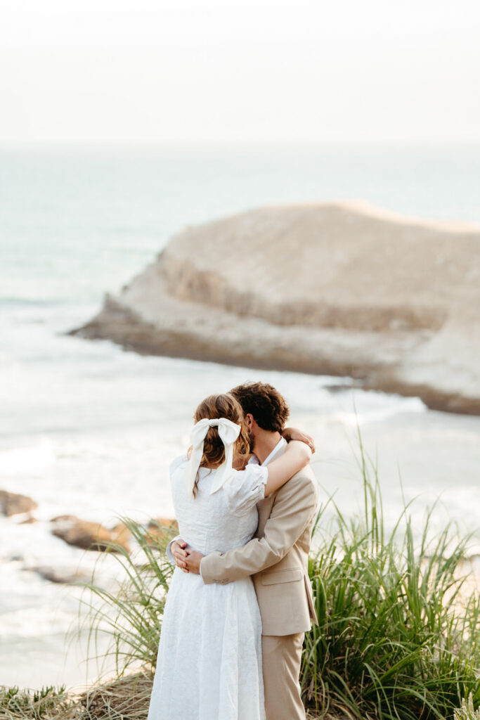 After saying goodbye to their family, they took some time to slow down and soak in the moment, sitting on a bench with a beautiful view overlooking the beach. Their intentionality to simply be present added to the overall sense of peace that rested over their whole day.