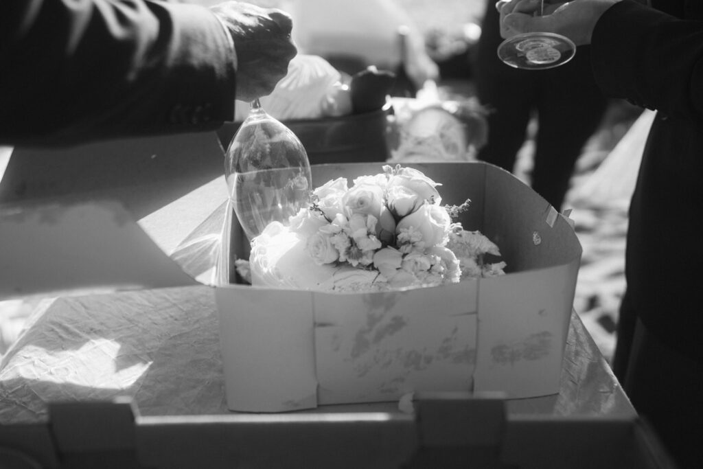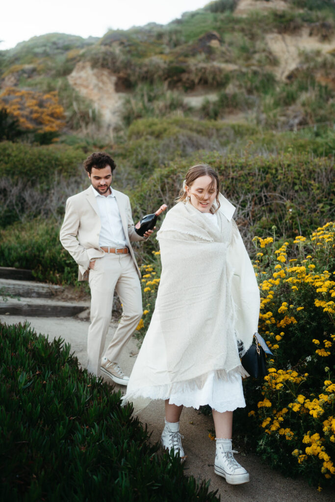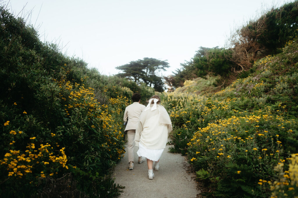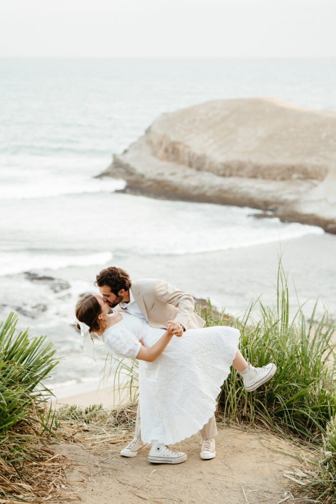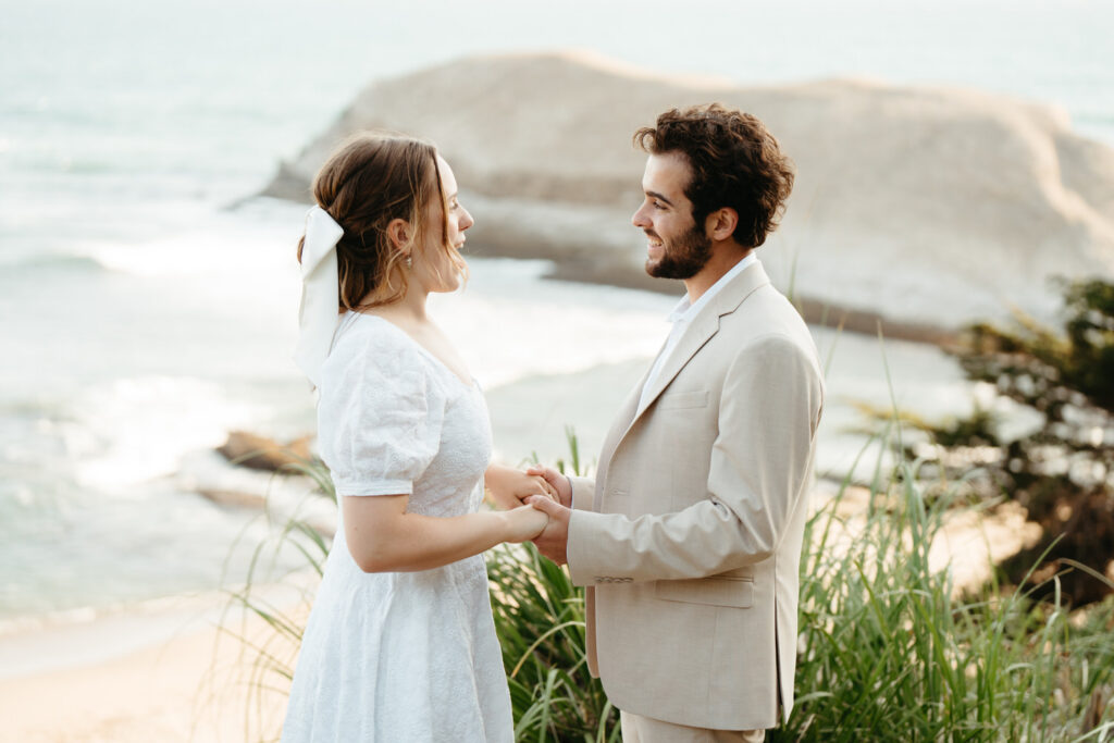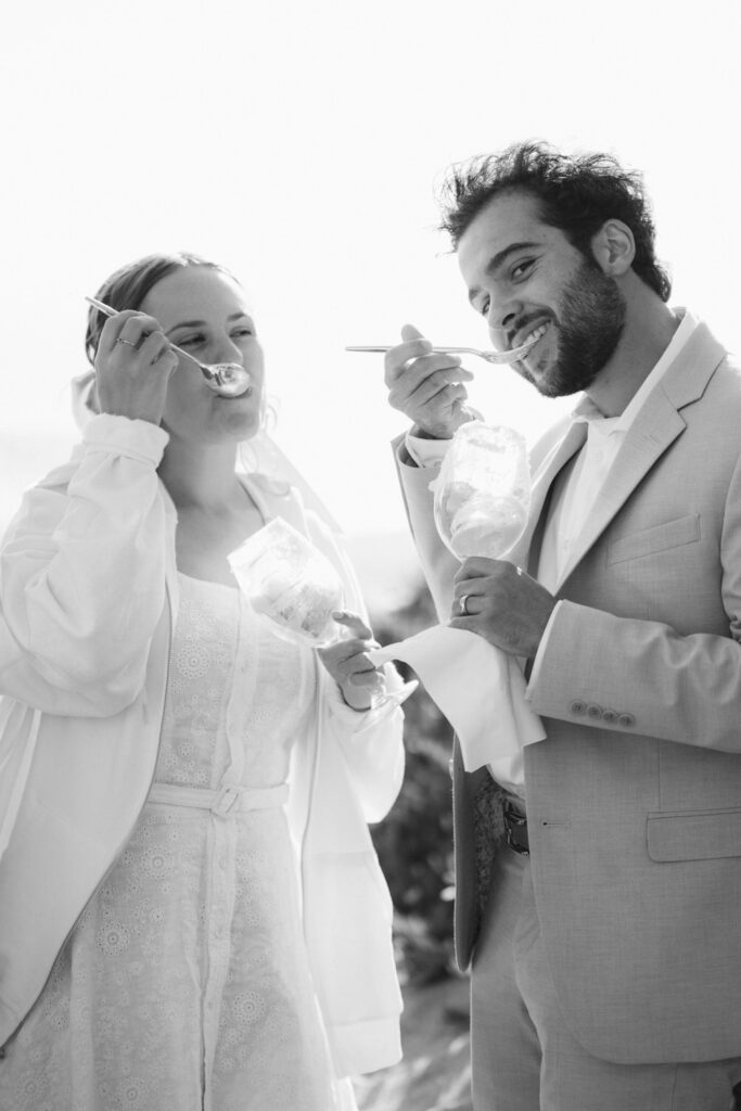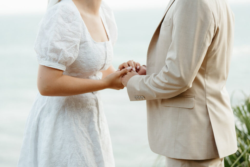 After saying goodbye to their family, they took some time to slow down and soak in the moment, sitting on a bench with a beautiful view overlooking the beach. Their intentionality to simply be present added to the overall sense of peace that rested over their whole day.