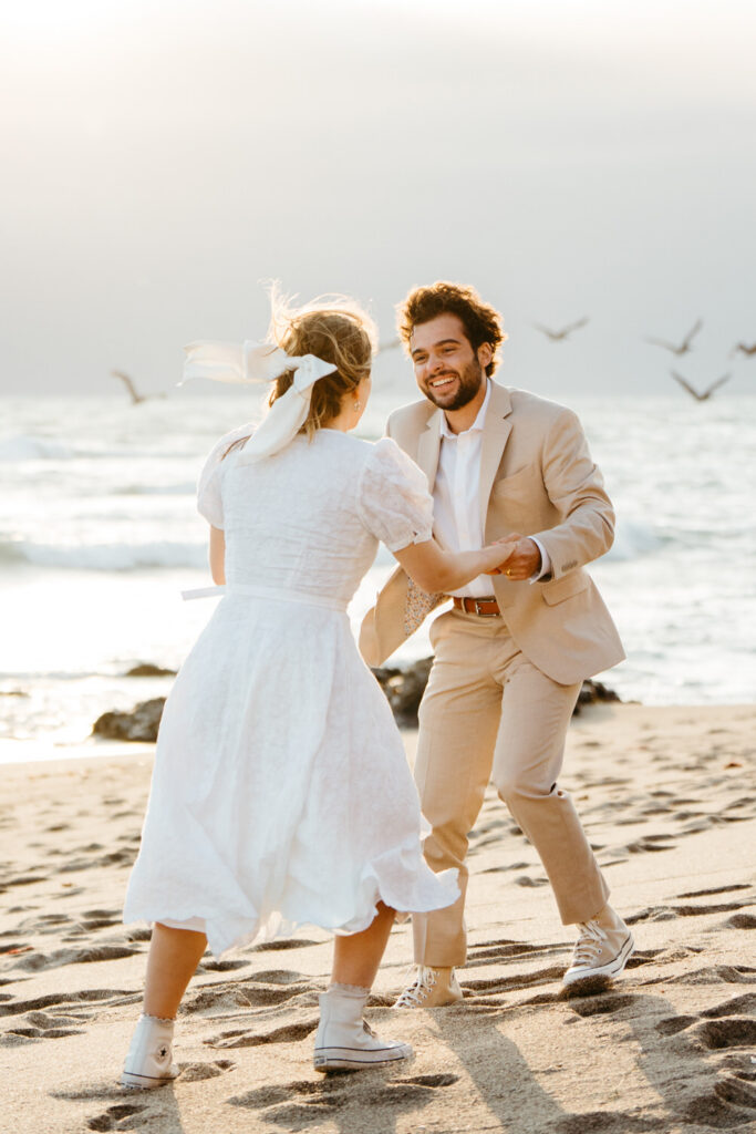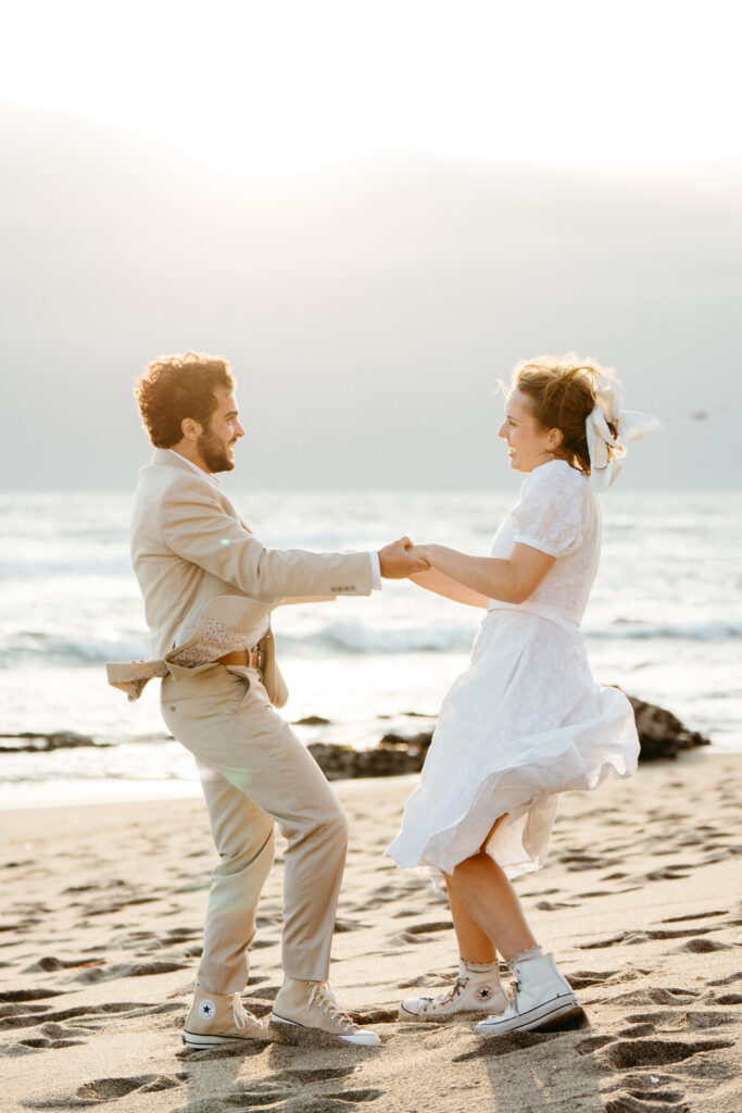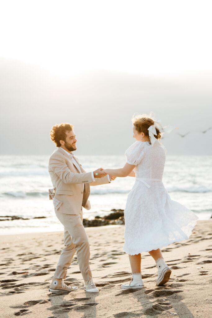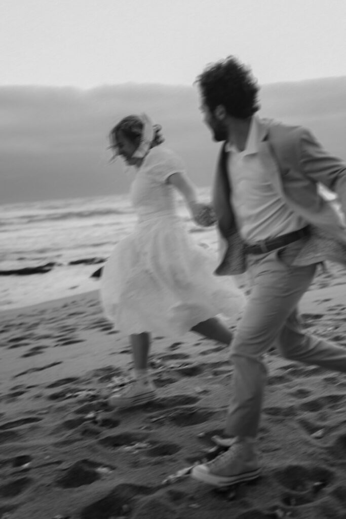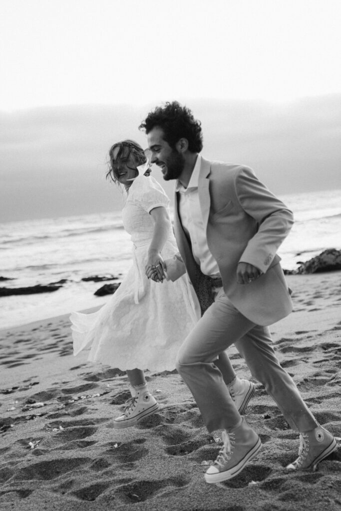 They spent the last moments of sunlight on their wedding day sprinting and frolicking along the beach, spending every last drop of their joyous wedding energy before ending with an intimate prayer over their marriage.