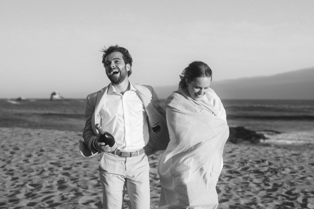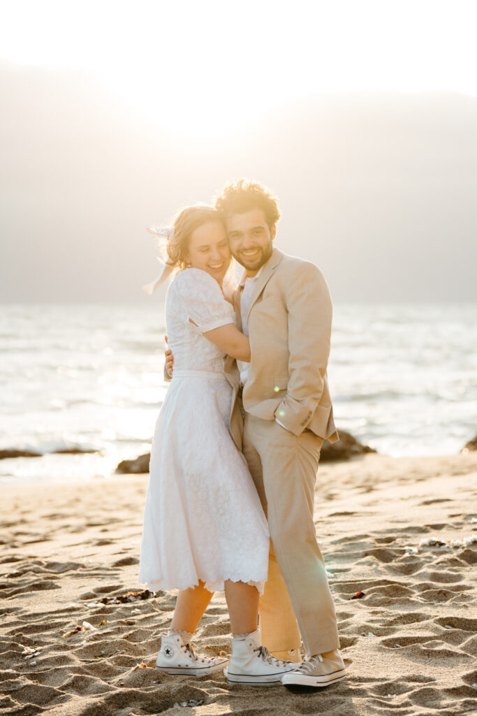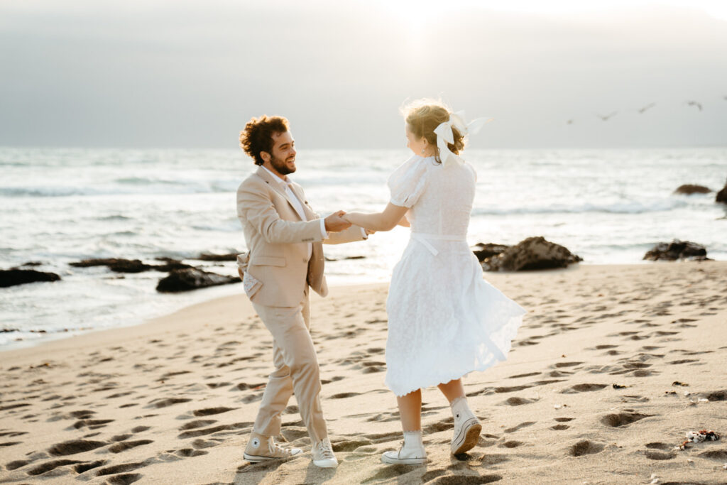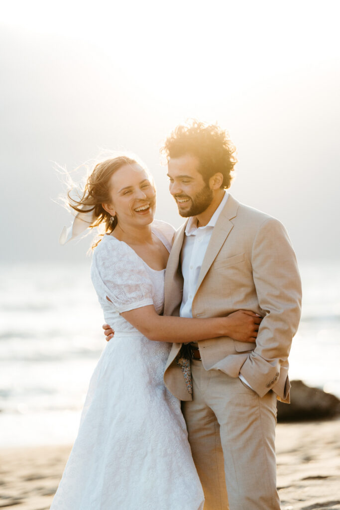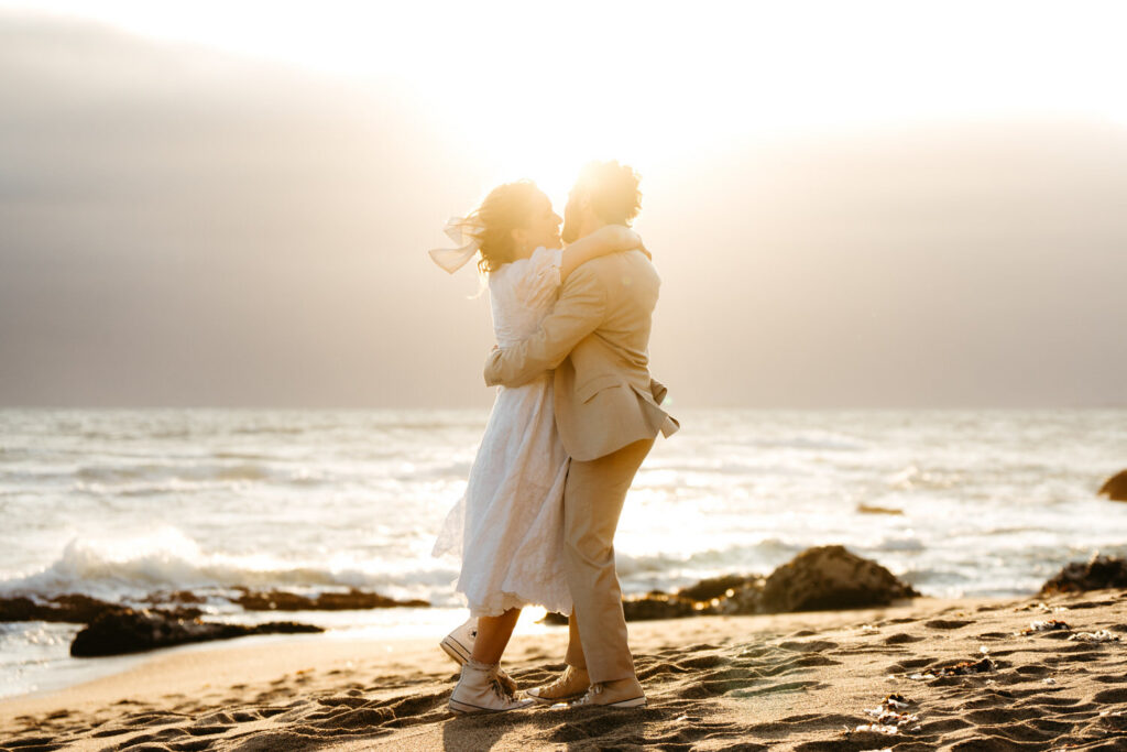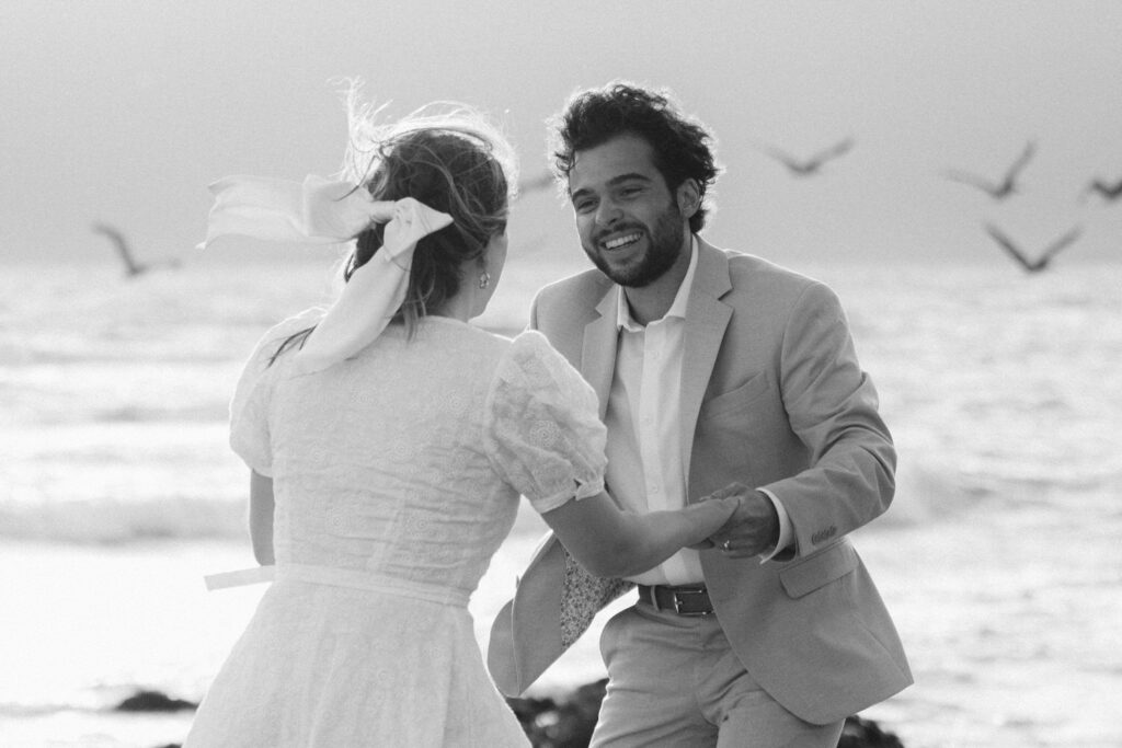 They spent the last moments of sunlight on their wedding day sprinting and frolicking along the beach, spending every last drop of their joyous wedding energy before ending with an intimate prayer over their marriage.