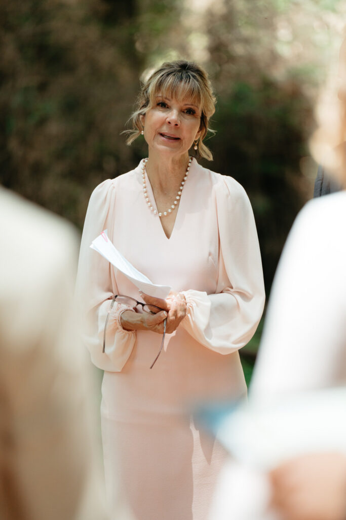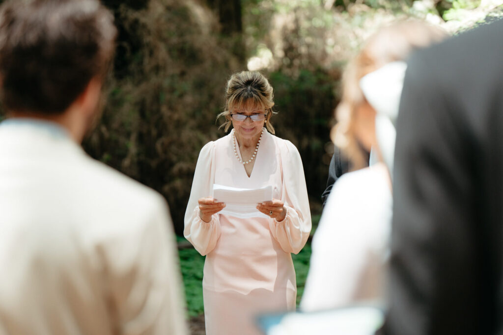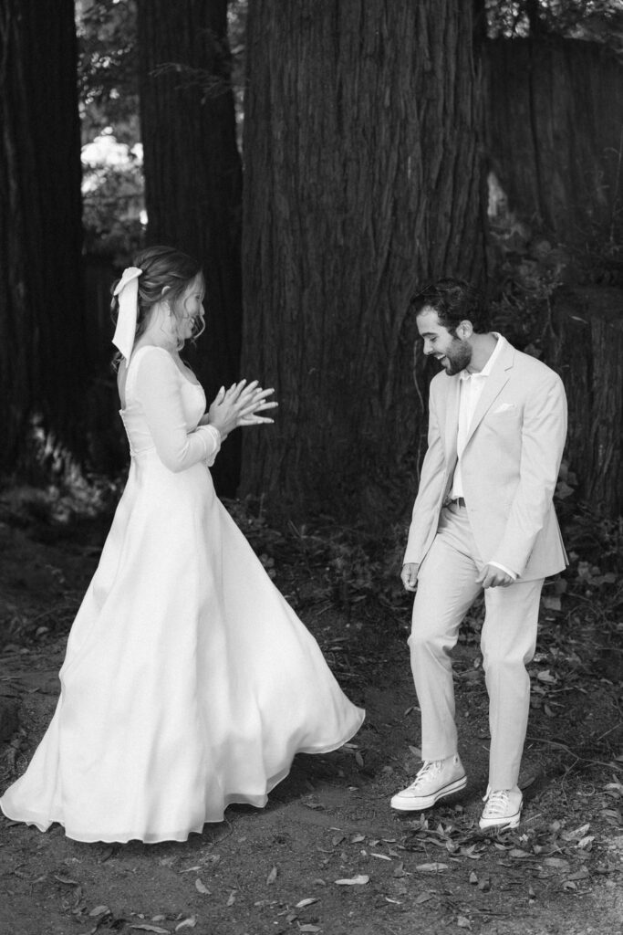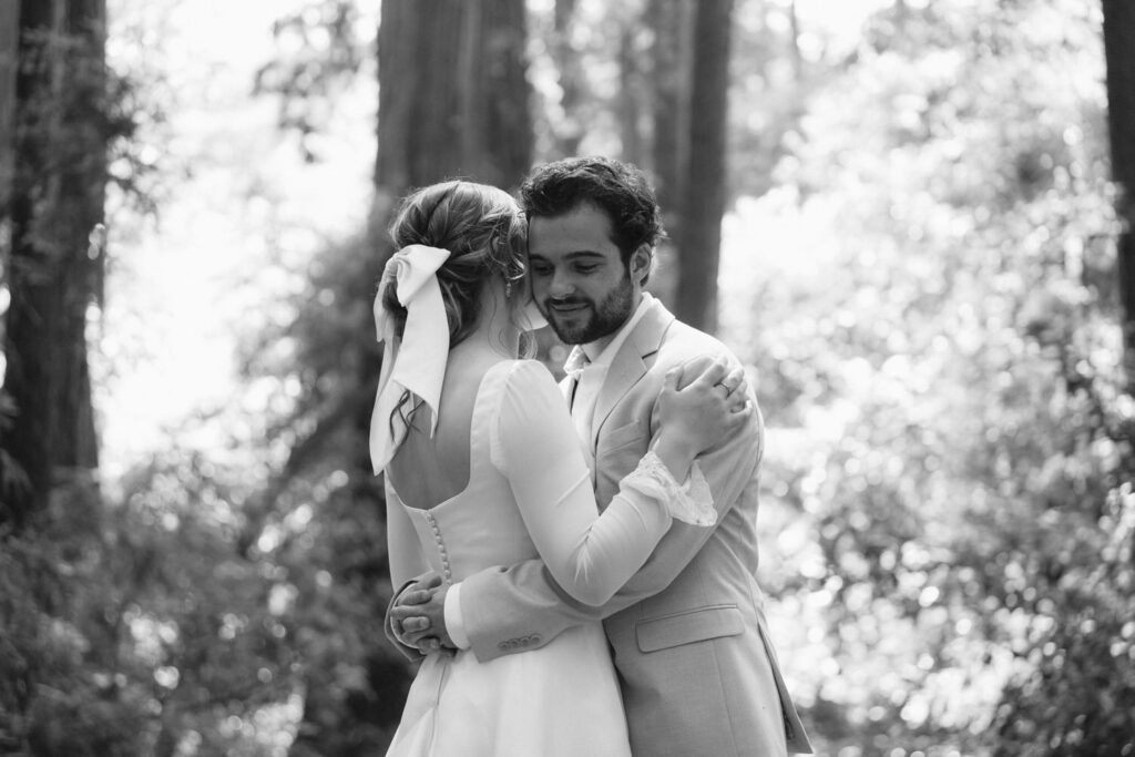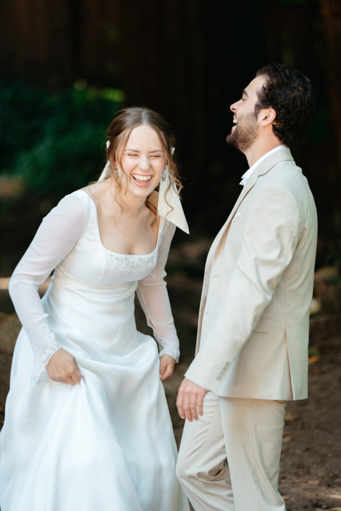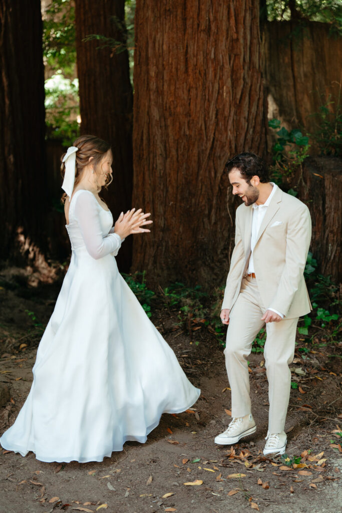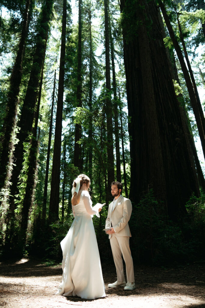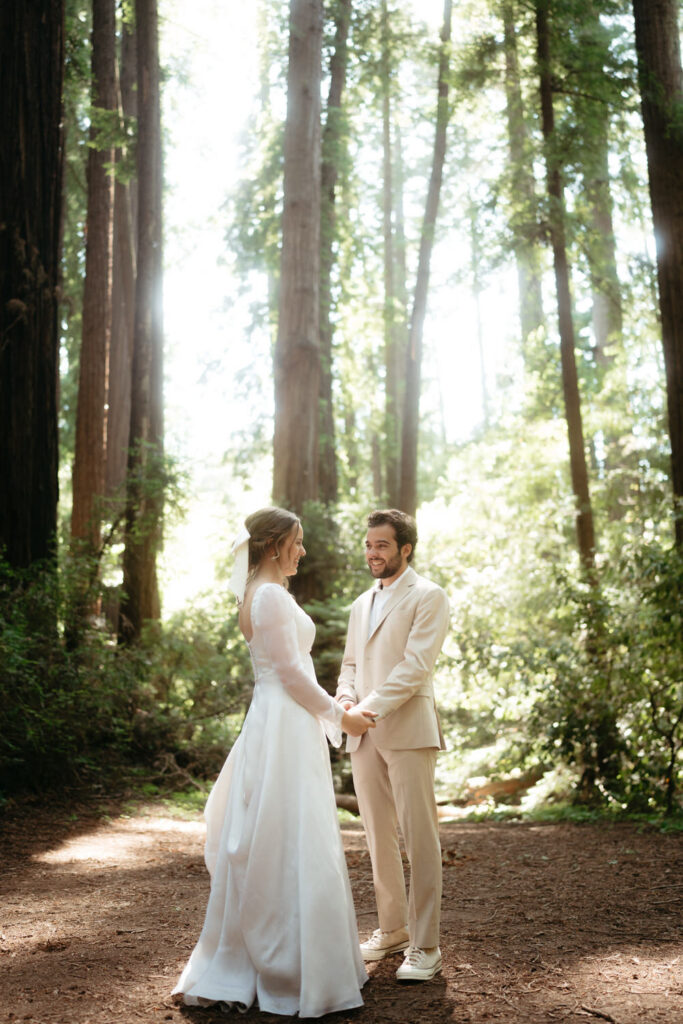 They had a clear vision of getting married outdoors and including redwood trees and the ocean. Luke wanted to include a beautiful forest because it reminds them both of the college they went to together and how their relationship grew there. Emma wanted to include the ocean because of the deep peace and tranquility it brings her.