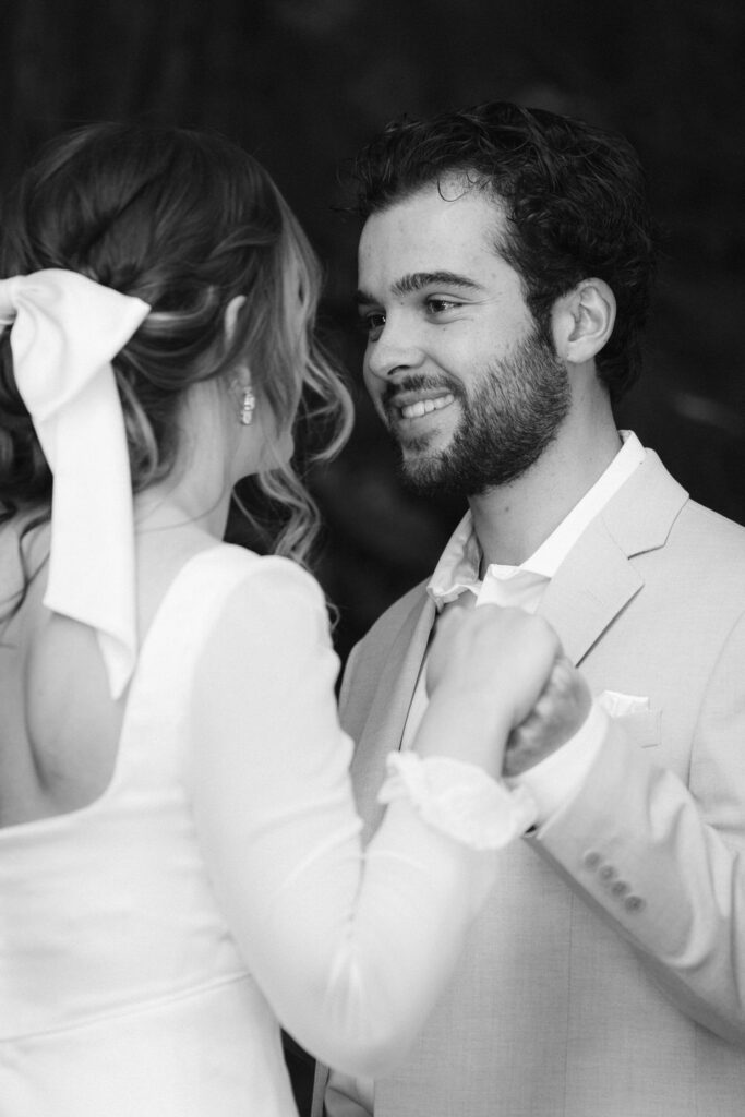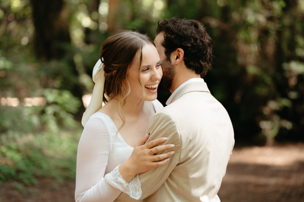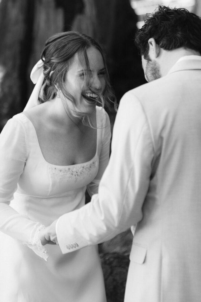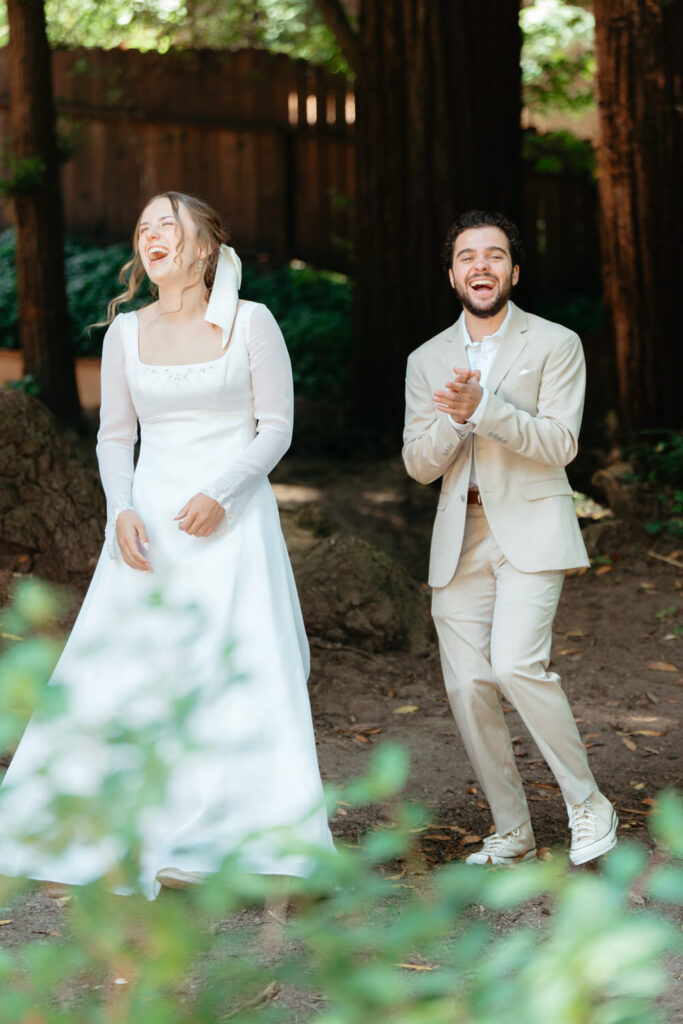 They had their first look in some redwoods outside of the cabin and Luke’s face absolutely exploded with joy when he saw Emma standing in her dress, the very dress her own mother got married in 23 years prior. They spent the whole time giddy with excitement over each other.