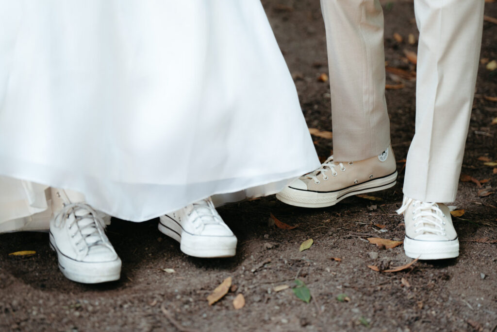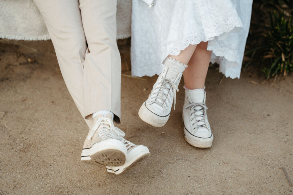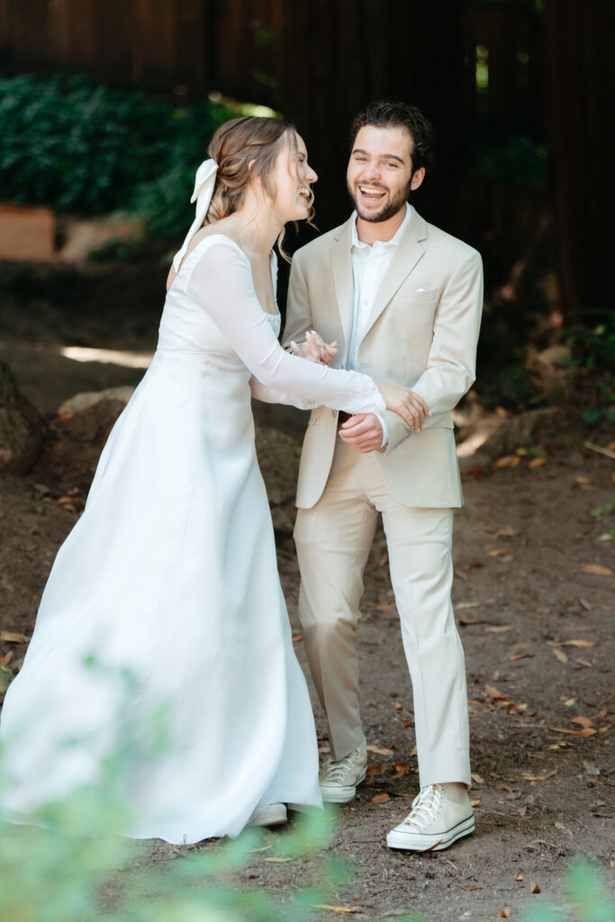 Luke’s younger brother officiated a beautiful ceremony at the Redwood Grove ceremony site in Henry Cowell. The majestic evergreen giants stood in silent witness in this secluded circle of redwood trees as they exchanged their vows in their Converse. Every member of their family took a turn sharing a Bible verse, a note, something they love about them, or all three.