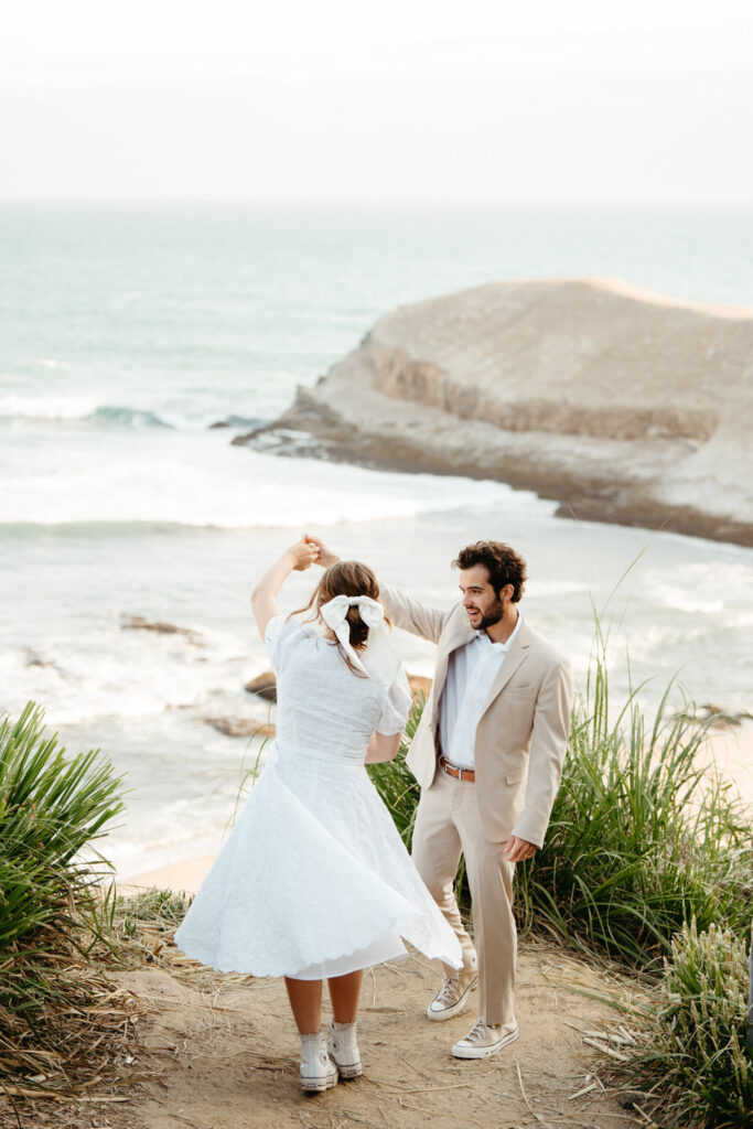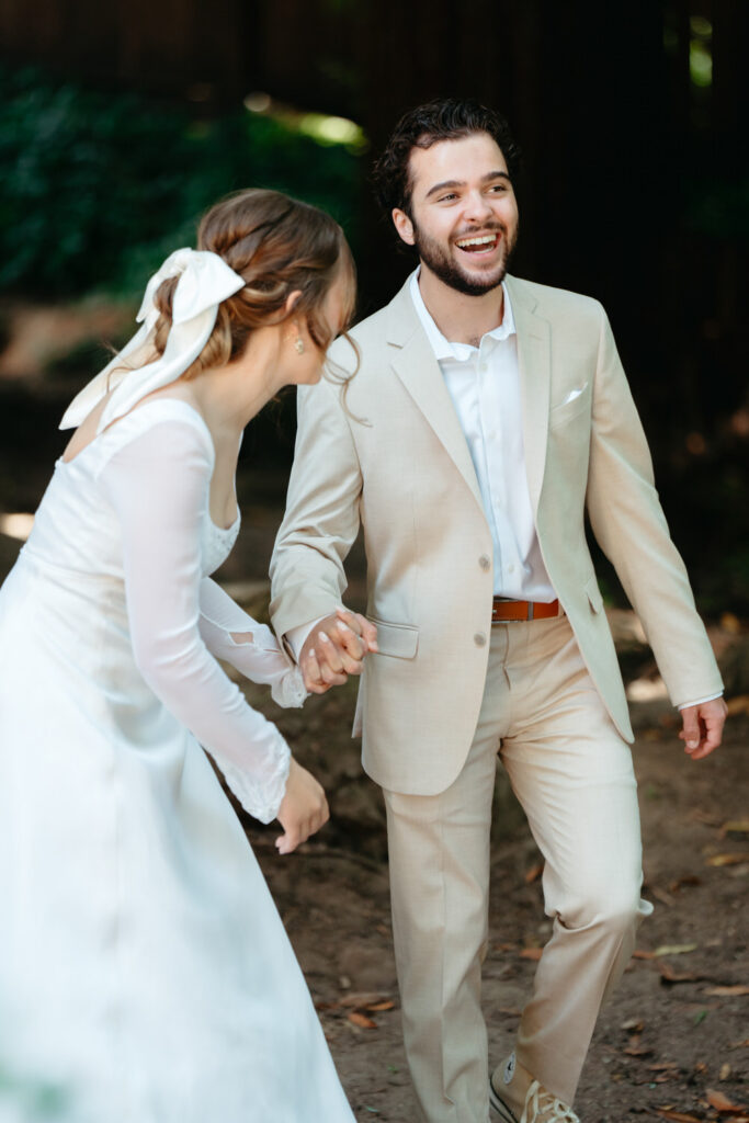 From our first planning call, Emma and Luke knew they wanted redwoods and the ocean, so we immediately started crafting a timeline that would give them both. We created a custom timeline for them that prioritized slow morning moments with coffee and the Bible, their ceremony in the redwoods with family, and private time by the ocean to reflect on their future together.