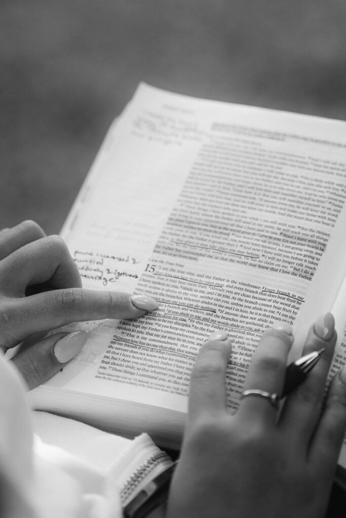 Emma and Luke started their elopement by reading the Bible together in front of their river-front cabin, listening to the sound of the babbling creek and looking out at the woods they were about to get married in.