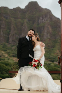 From our first planning call, Joanna and Tommy knew they wanted an intimate ceremony in nature with incredible photo opportunities. We recommended Kualoa Ranch for their ceremony location, the stunning Moli’i Gardens with its spiral staircase and lush tropical setting was perfect for their vision.