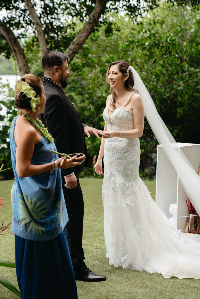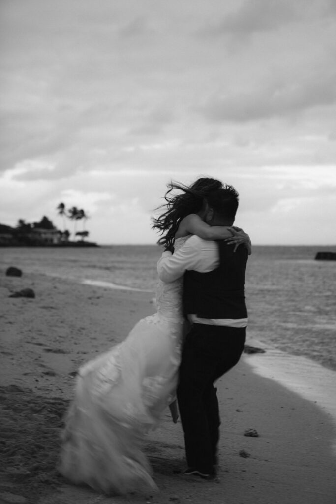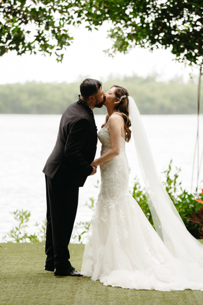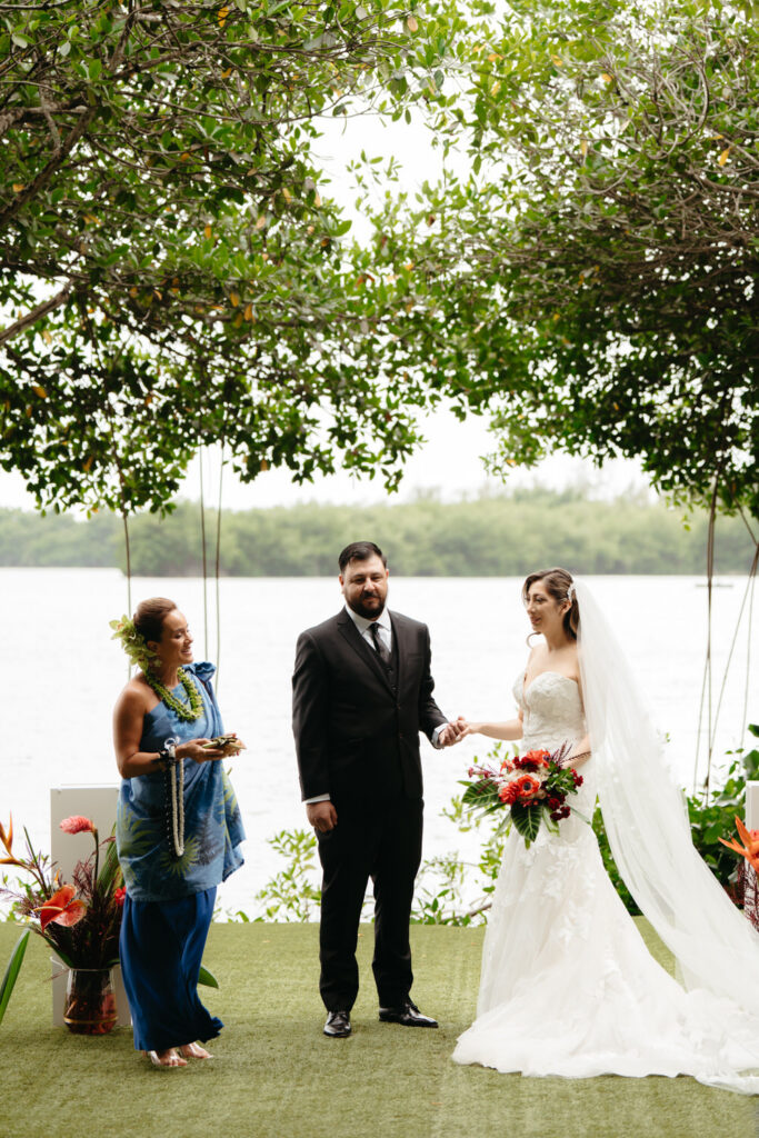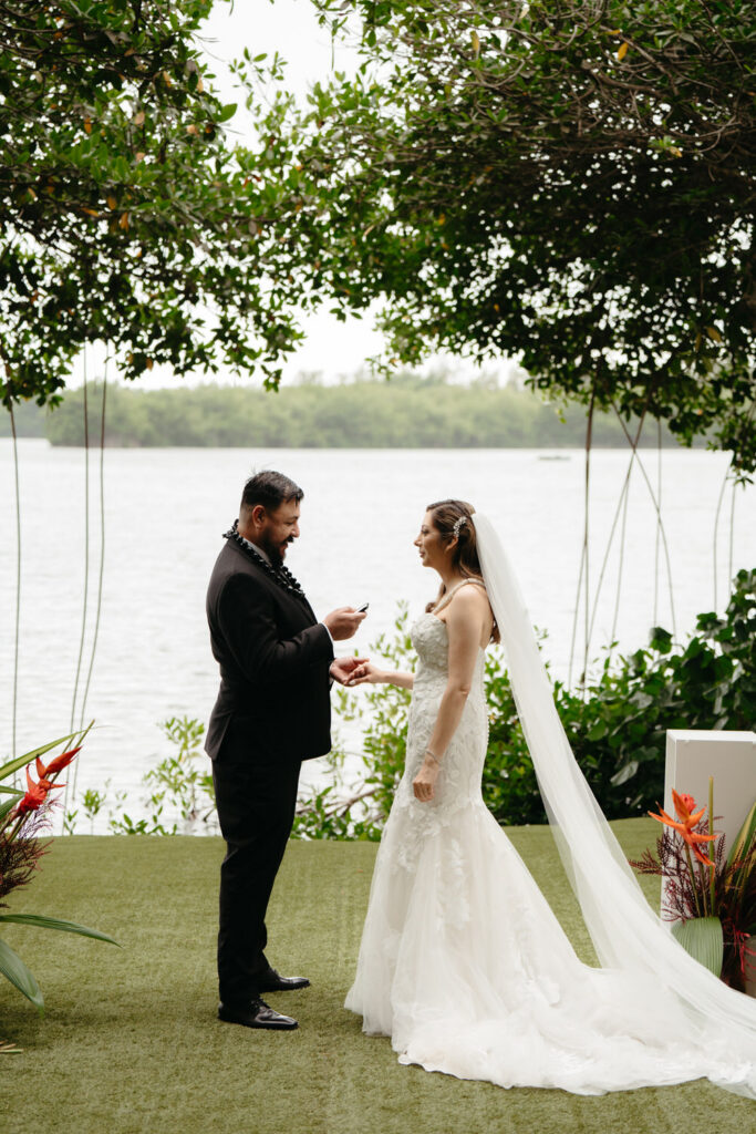 Their ceremony was intimate, with only Tommy’s parents as guests. Their Hawaiian officiant walked them through a deeply meaningful ceremony full of symbolism about their love, draping leis around each other’s necks and dripping water from the vast ocean on their wedding rings to show the size of their love for each other.