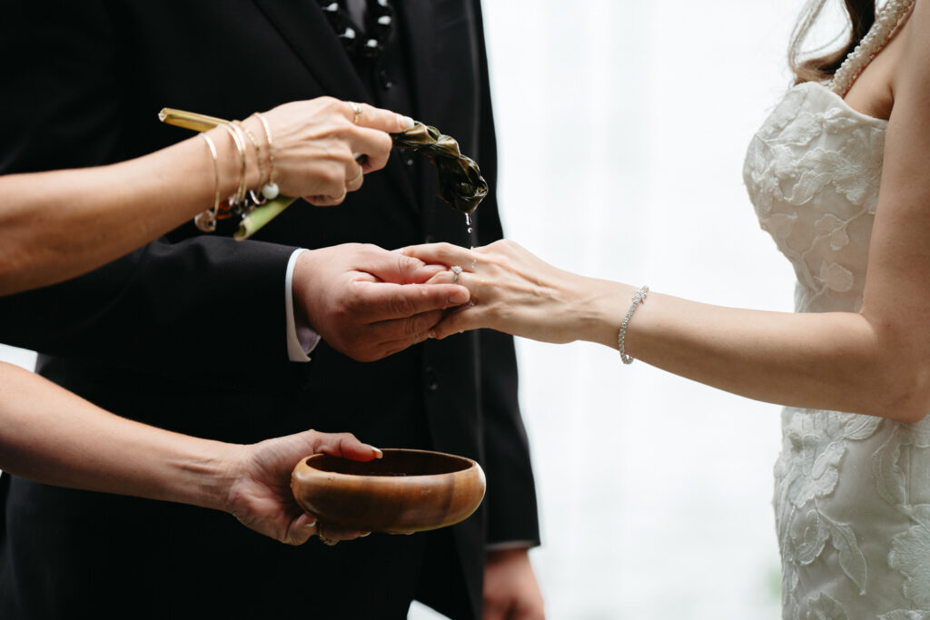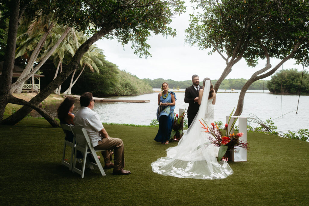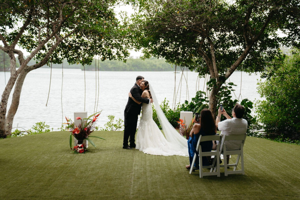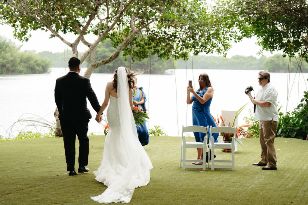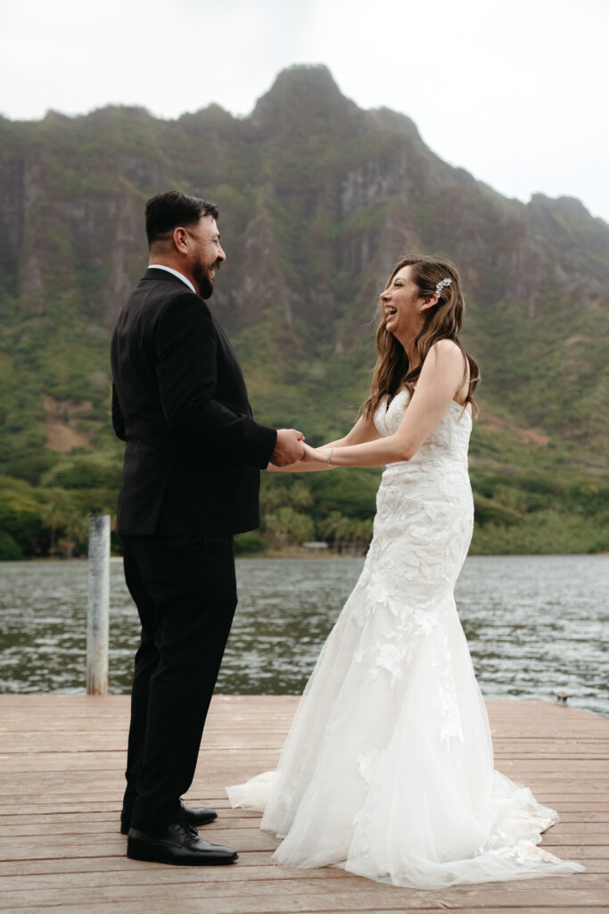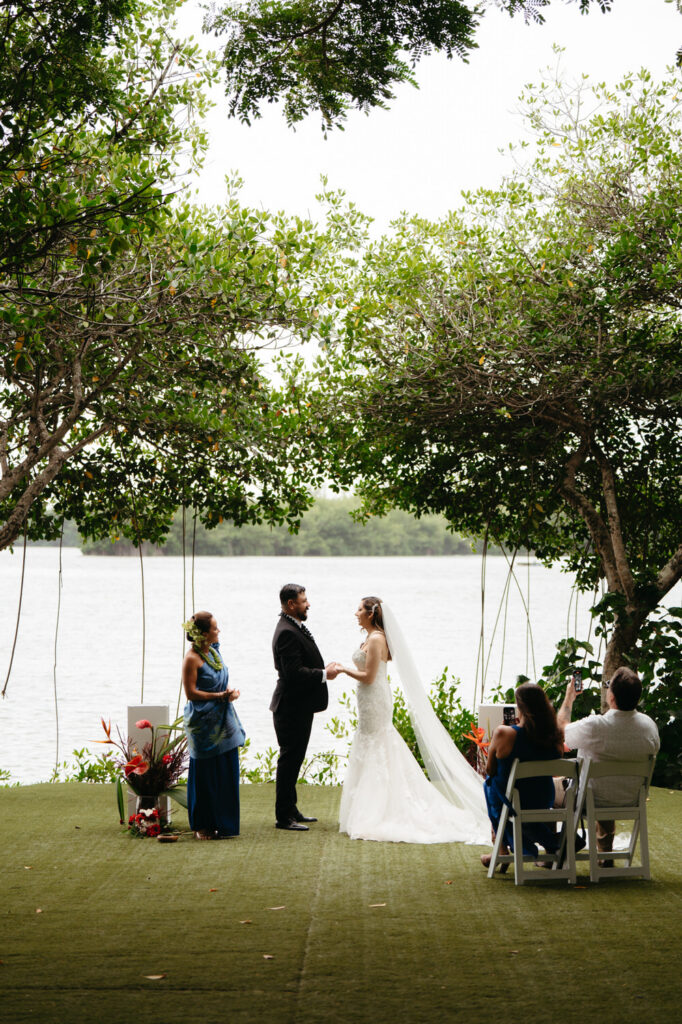 Their ceremony was intimate, with only Tommy’s parents as guests. Their Hawaiian officiant walked them through a deeply meaningful ceremony full of symbolism about their love, draping leis around each other’s necks and dripping water from the vast ocean on their wedding rings to show the size of their love for each other.