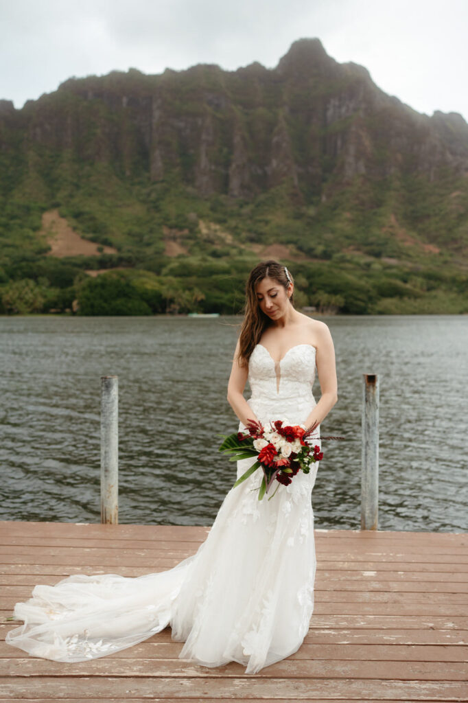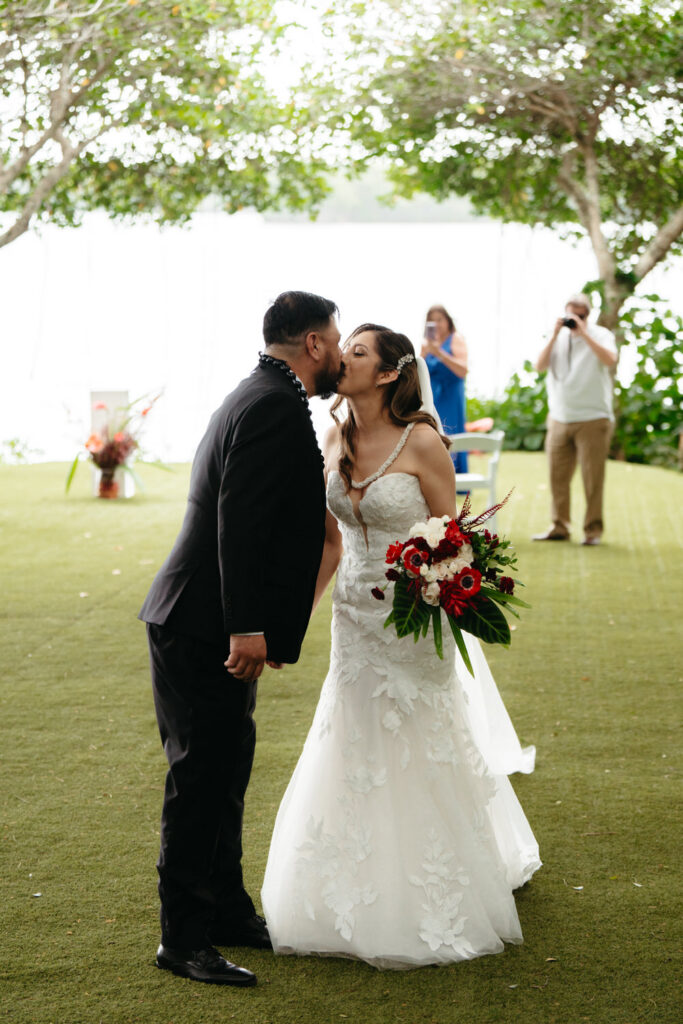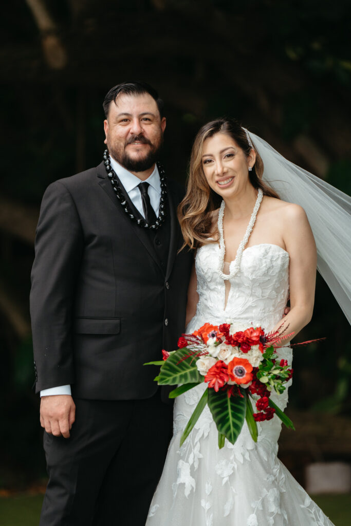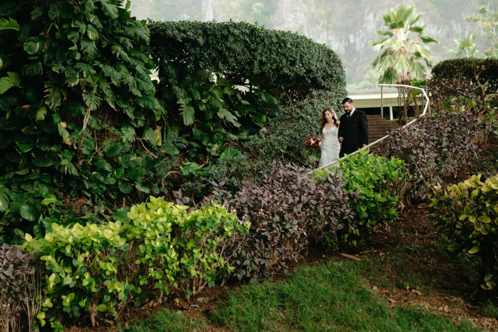 From our first planning call, Joanna and Tommy knew they wanted an intimate ceremony in nature with incredible photo opportunities. We recommended Kualoa Ranch for their ceremony location, the stunning Moli’i Gardens with its spiral staircase and lush tropical setting was perfect for their vision.