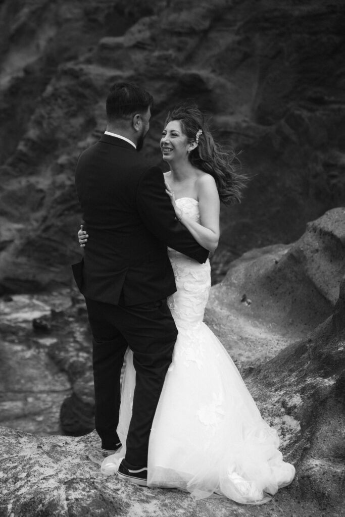 Our first stop was a set of ocean cliffs with striking turquoise water where they stood and gazed out at the crashing waves and knew their marriage would withstand whatever rough waters life would throw at them.