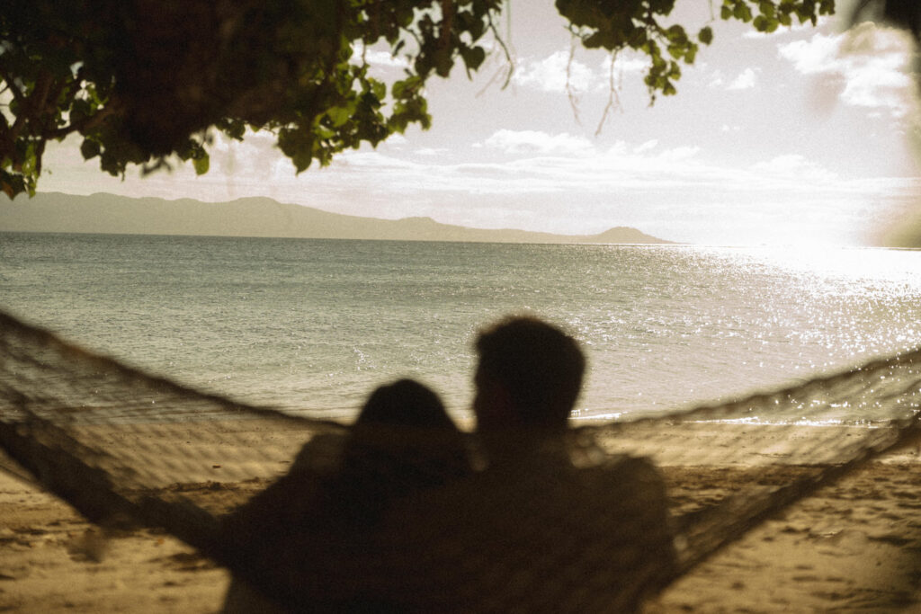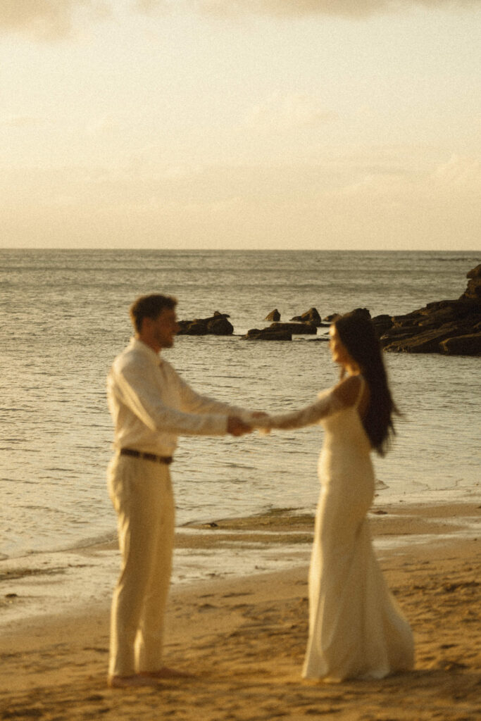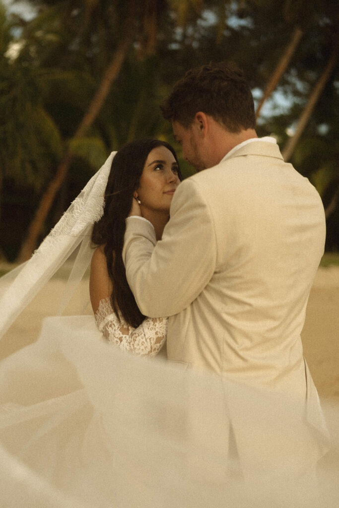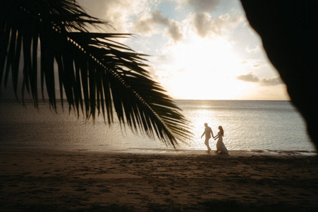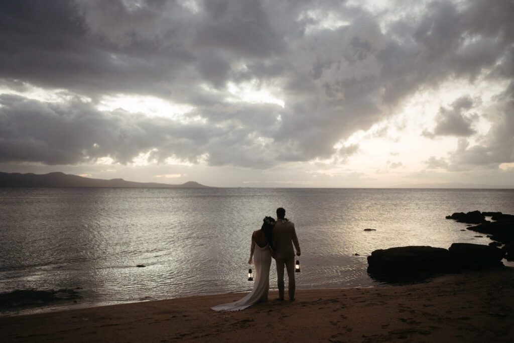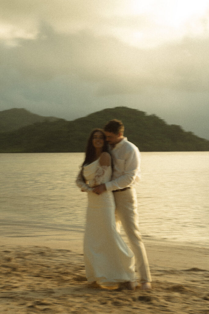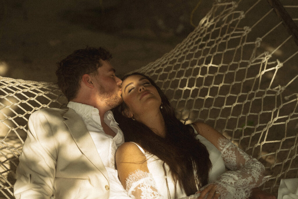After the ceremony they relaxed together in a hammock, taking the first moments of their marriage to slowly let the reality of the beauty around them sink in. Then they frolicked up and down the beach, dancing and laughing one moment, gazing out at the view the next. Bathed in the sunset with tropical paradise surrounding them – they looked more beautiful and overflowing with magic than ever before.