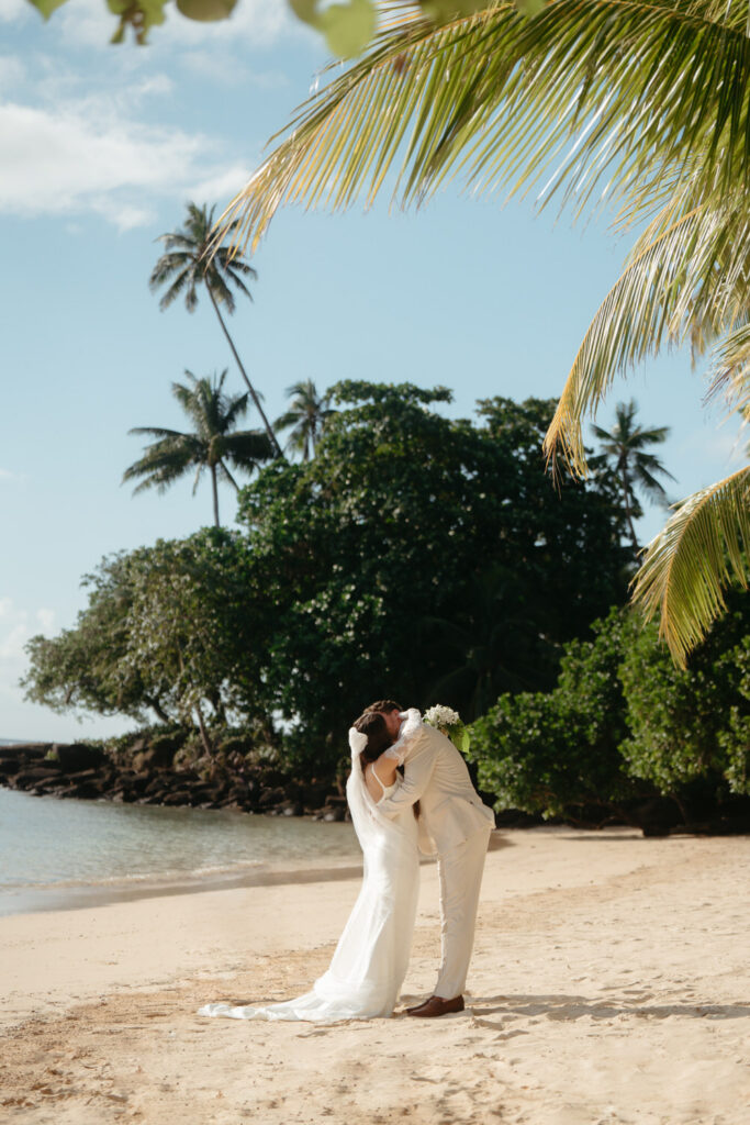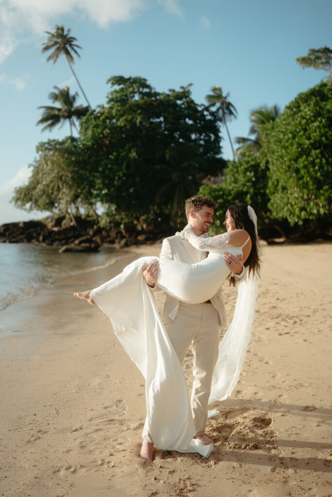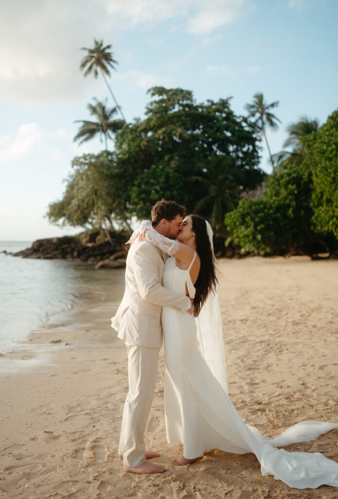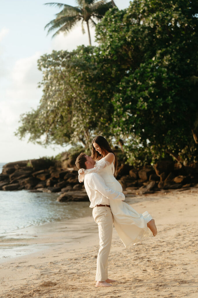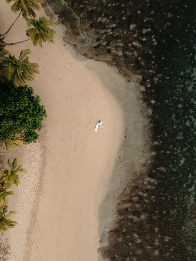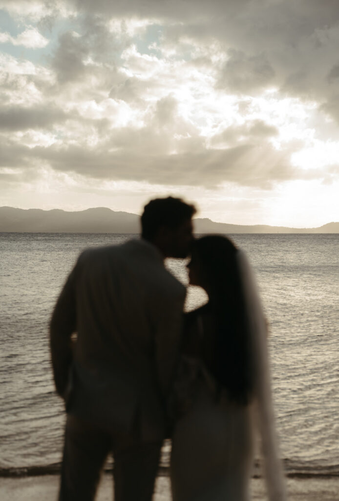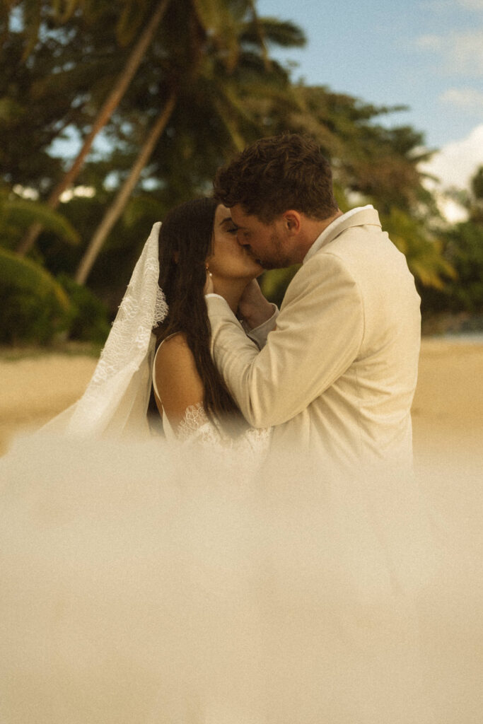 After the ceremony they relaxed together in a hammock, taking the first moments of their marriage to slowly let the reality of the beauty around them sink in. Then they frolicked up and down the beach, dancing and laughing one moment, gazing out at the view the next. Bathed in the sunset with tropical paradise surrounding them – they looked more beautiful and overflowing with magic than ever before.