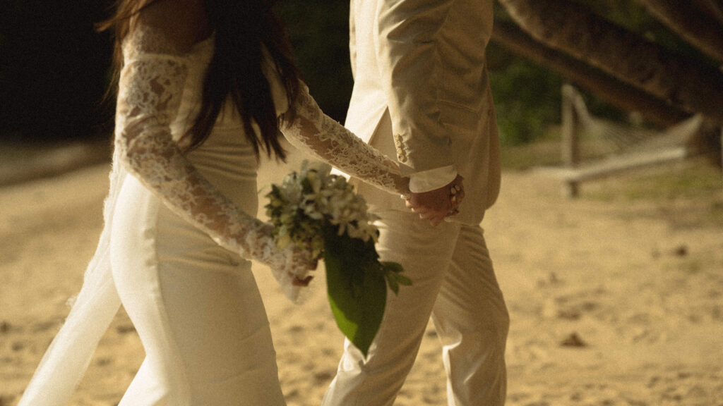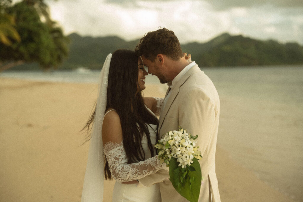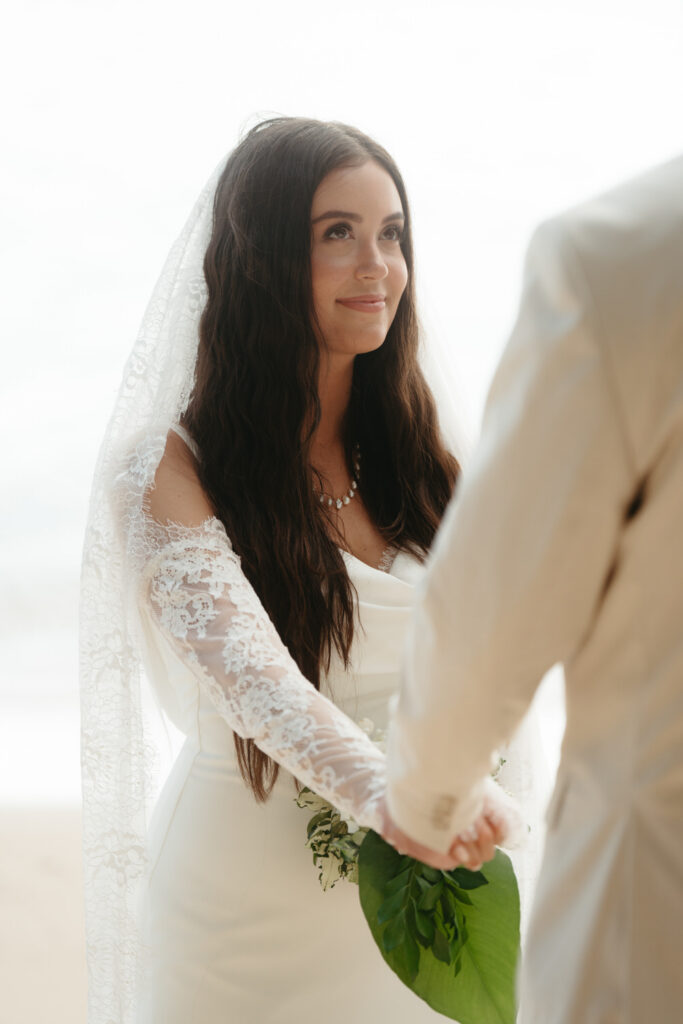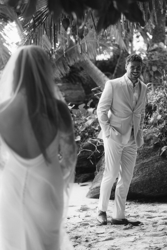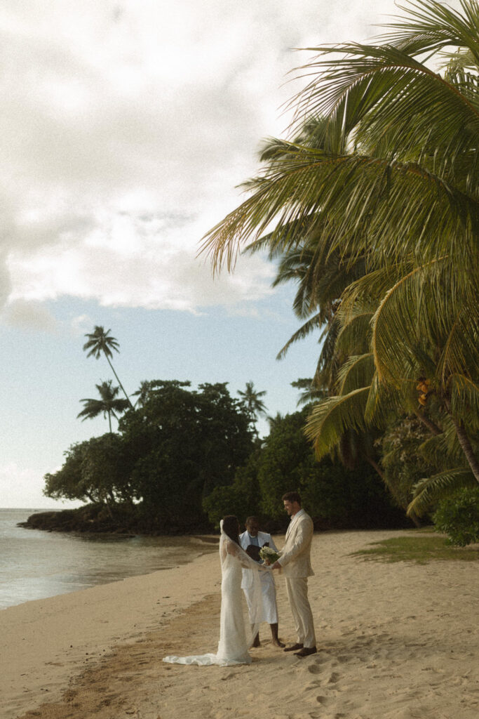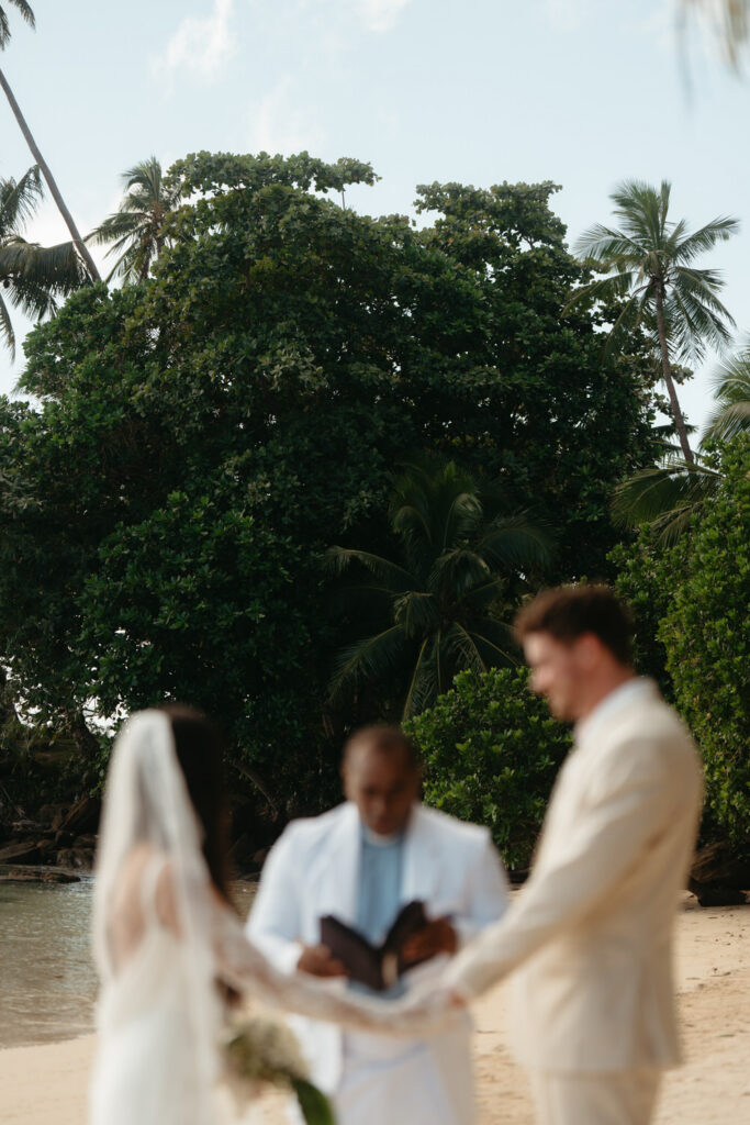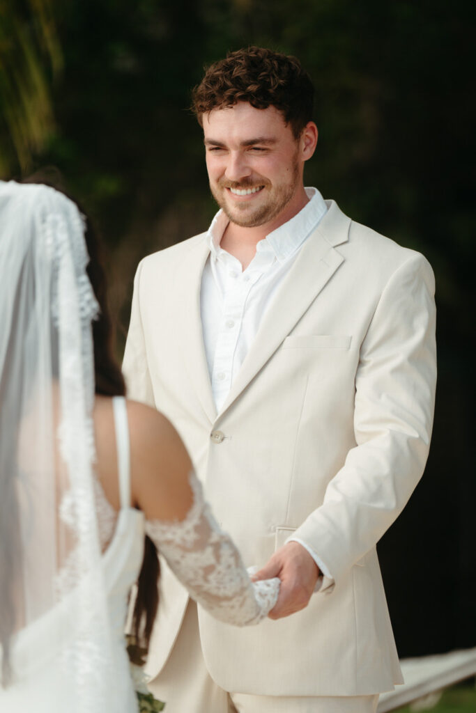 They got ready separately in their ocean view bungalow tucked into the jungle before sharing an emotional first look in a secluded cove. The waves gently lapped and palm trees swayed as they breathed in the reality of where they were and what they were about to do.