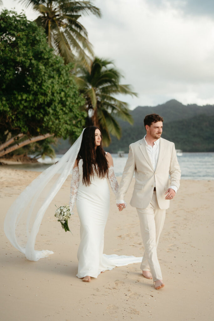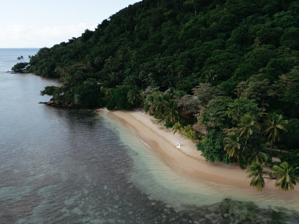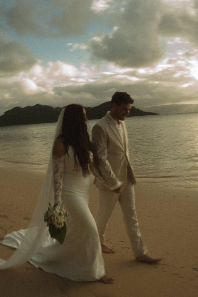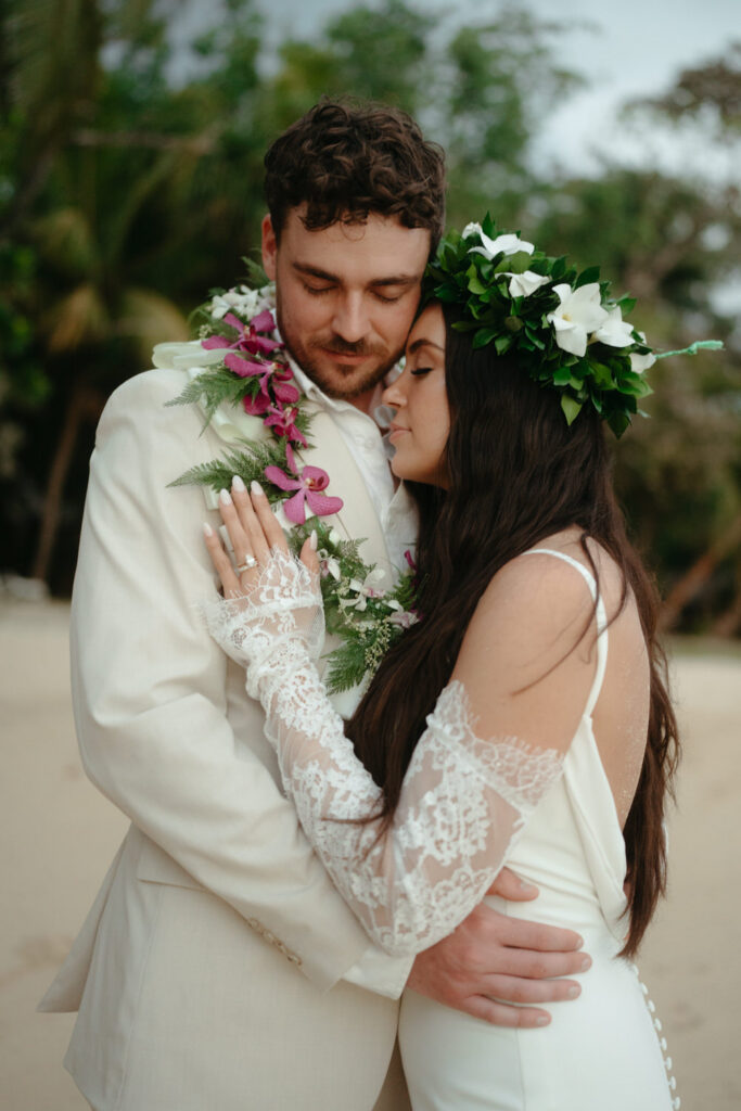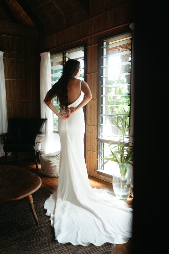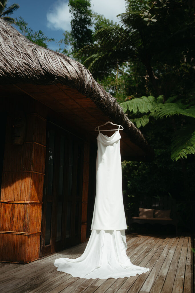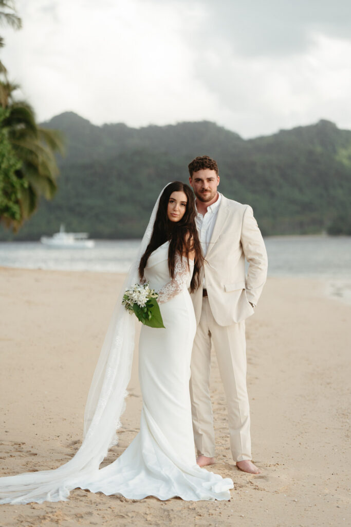 They got ready separately in their ocean view bungalow tucked into the jungle before sharing an emotional first look in a secluded cove. The waves gently lapped and palm trees swayed as they breathed in the reality of where they were and what they were about to do.