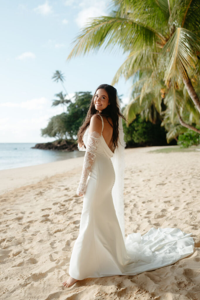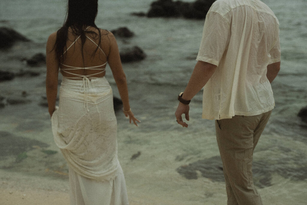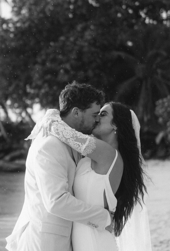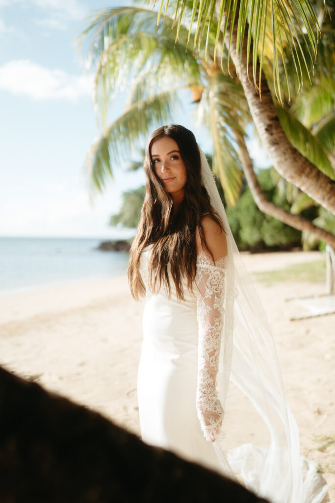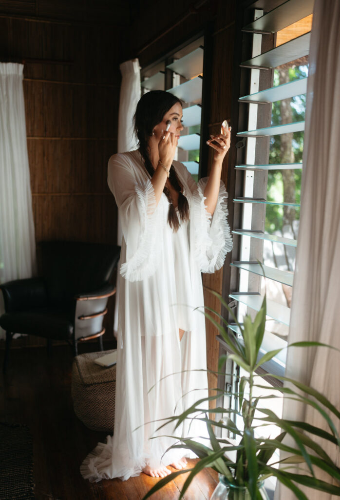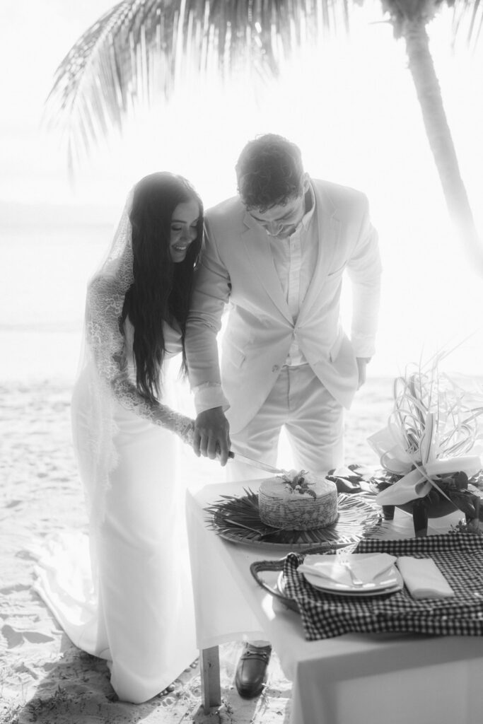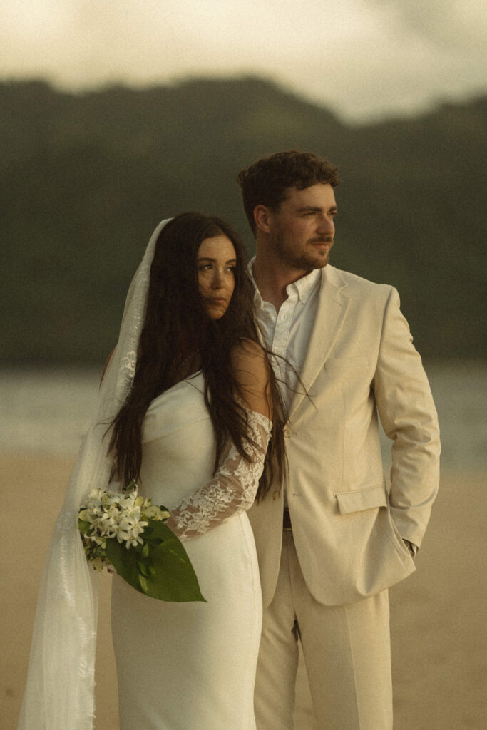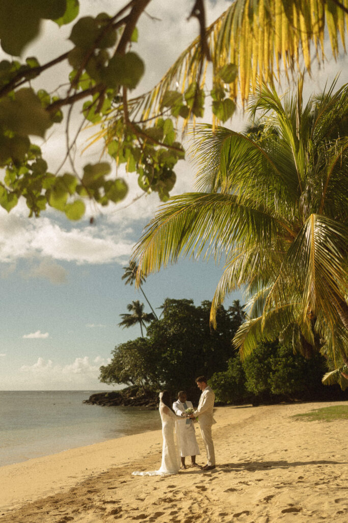 They got ready separately in their ocean view bungalow tucked into the jungle before sharing an emotional first look in a secluded cove. The waves gently lapped and palm trees swayed as they breathed in the reality of where they were and what they were about to do.