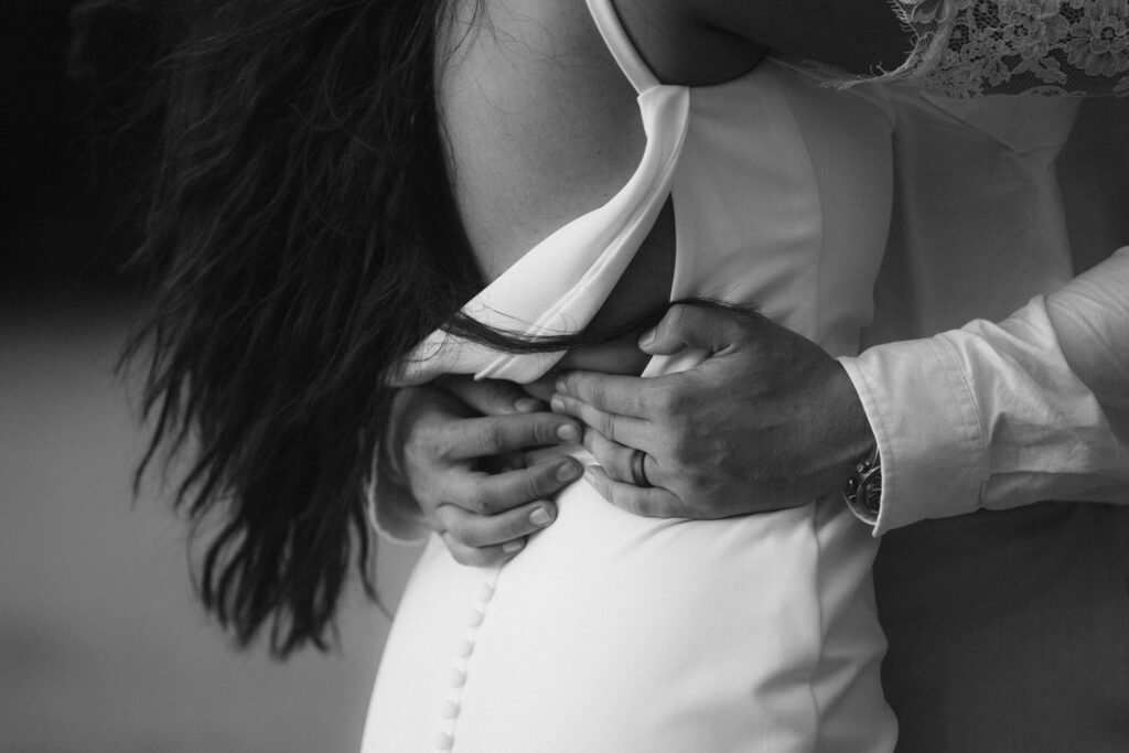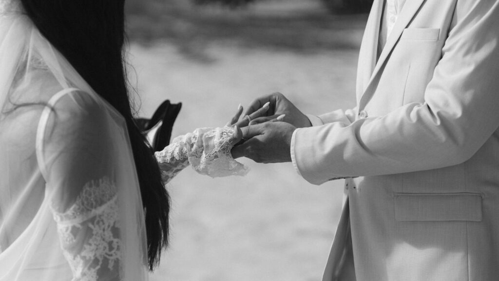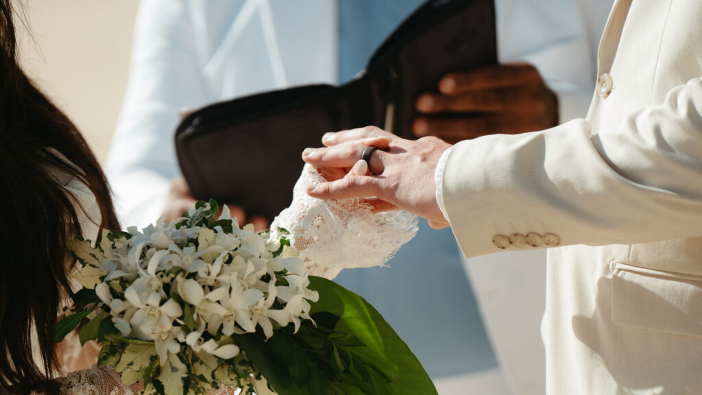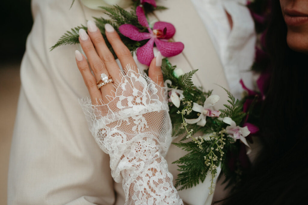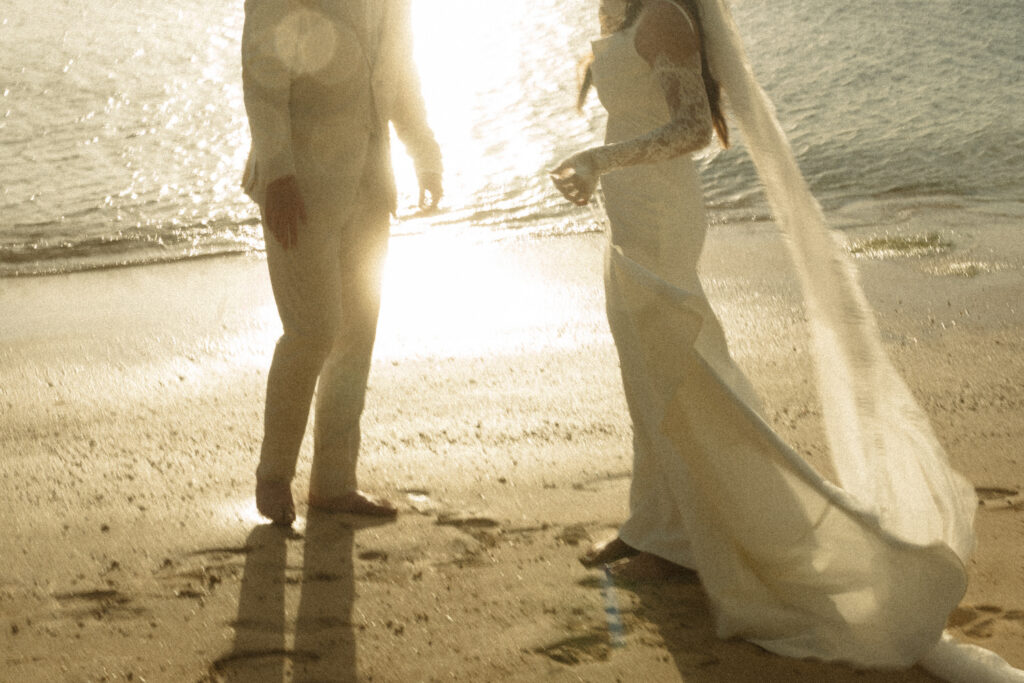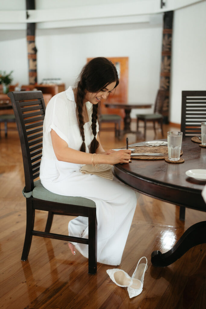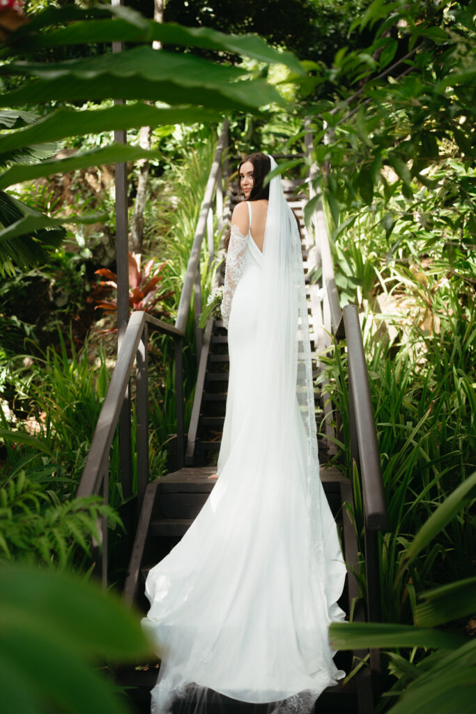 They got ready separately in their ocean view bungalow tucked into the jungle before sharing an emotional first look in a secluded cove. The waves gently lapped and palm trees swayed as they breathed in the reality of where they were and what they were about to do.