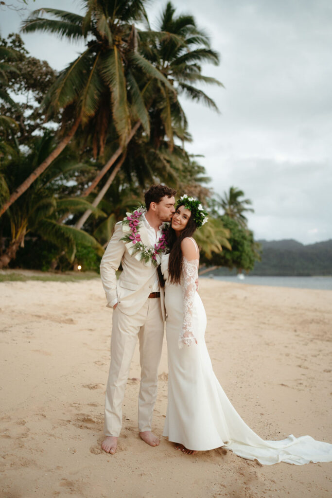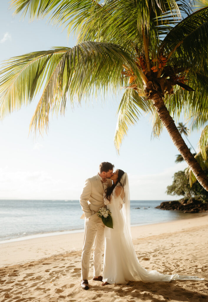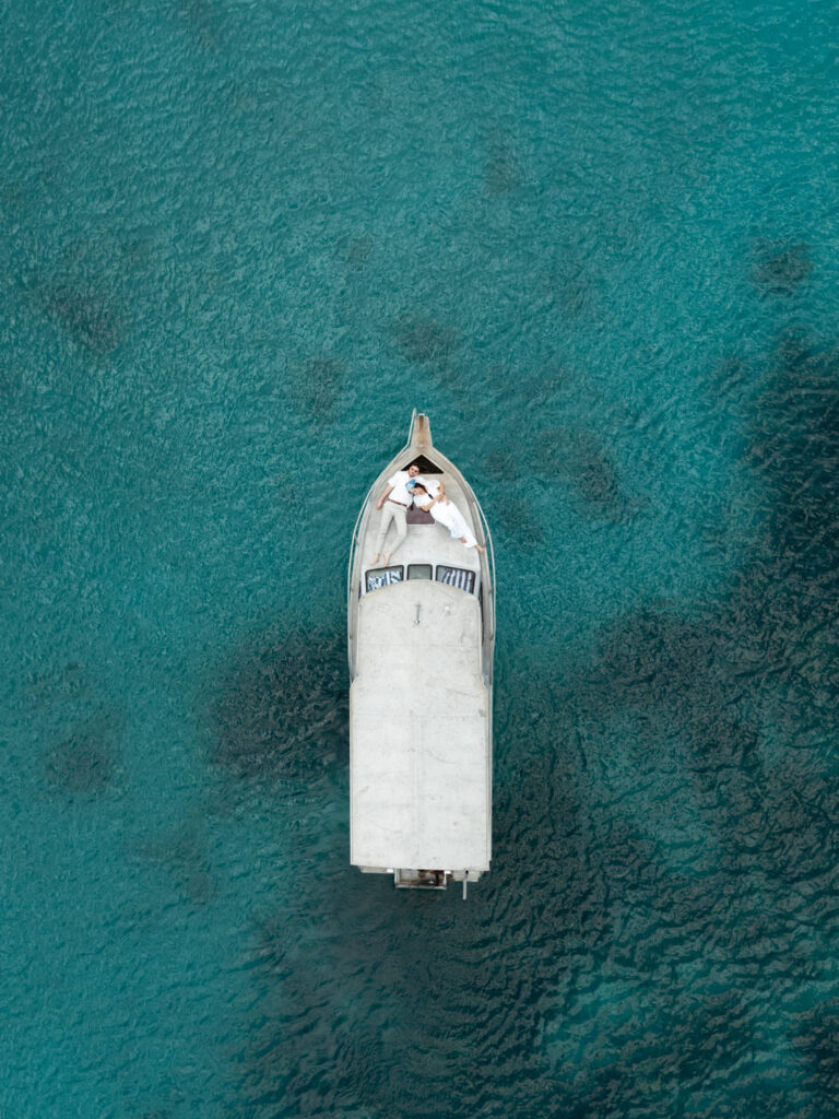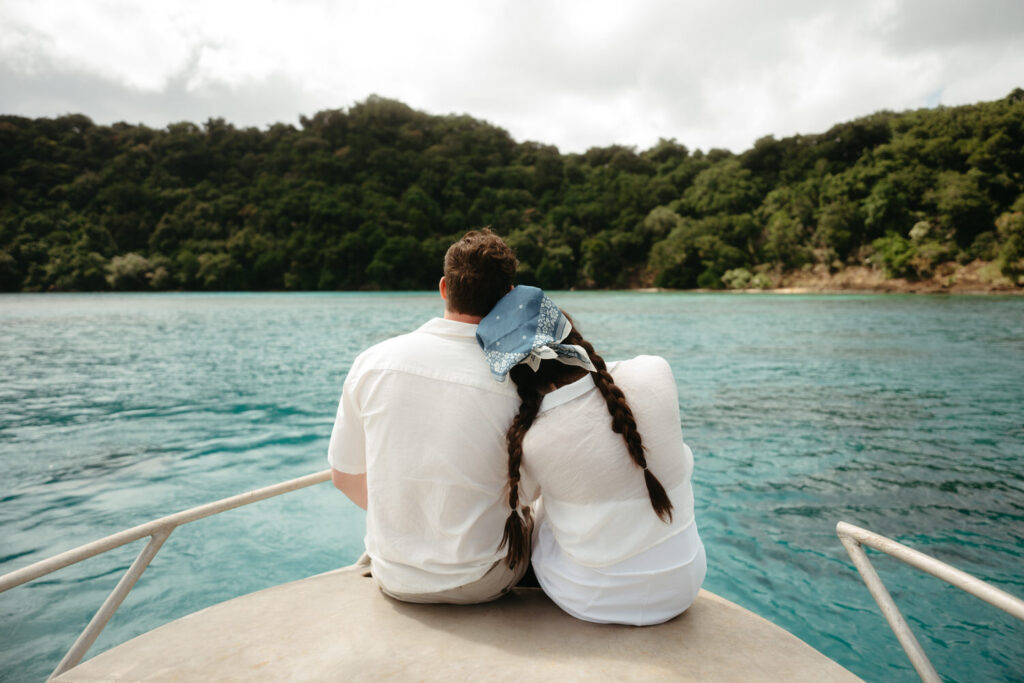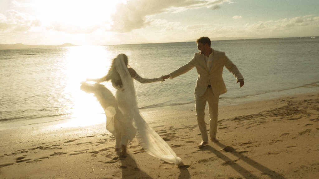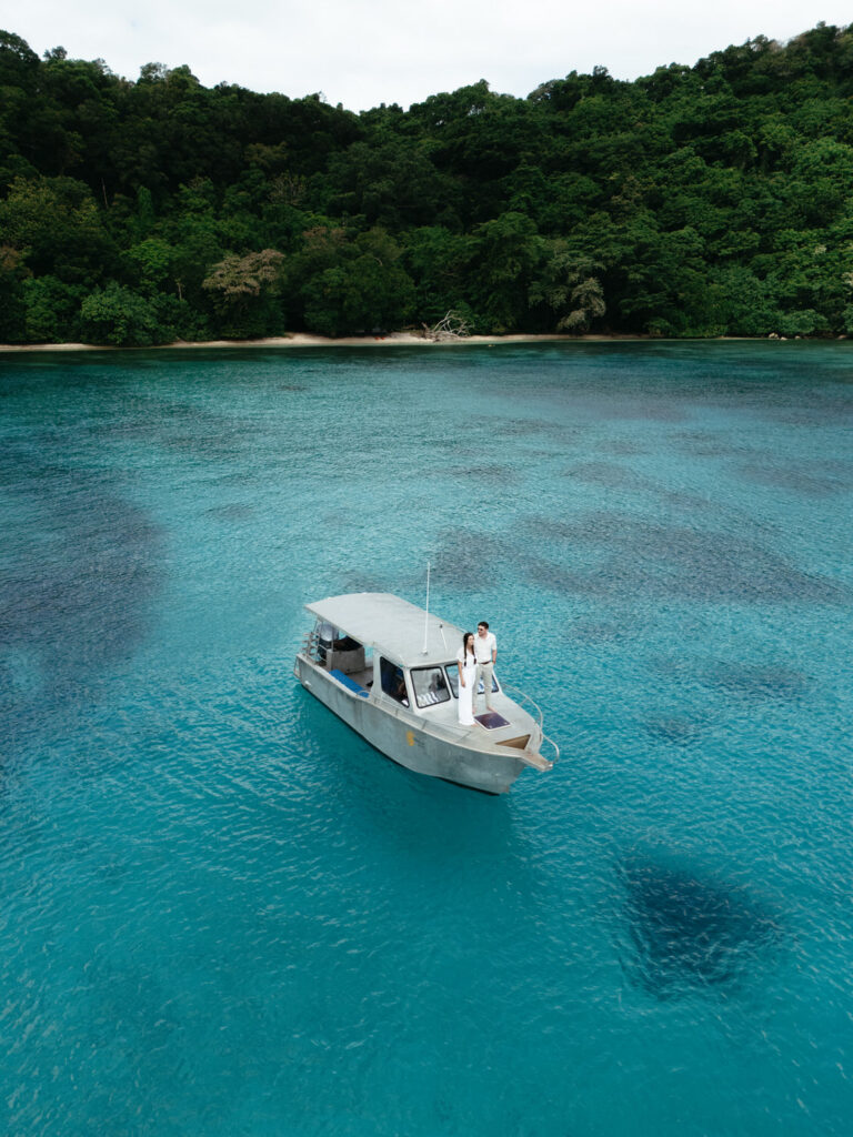 We met Marissa and Giacomo to pick up their marriage license, then immediately hopped on a boat to sail across the ocean to Matangi Island Resort. The boat ride threw us right into the adventure – soaring over the waves, they held each other close and enjoyed stunning views of mountain islands covered in jungle and turquoise waters shimmering like gemstones. Getting a bird’s-eye view with the drone was breathtaking! Micah piloted it from inside the boat and had to climb on the roof to catch it since the boat was constantly drifting!