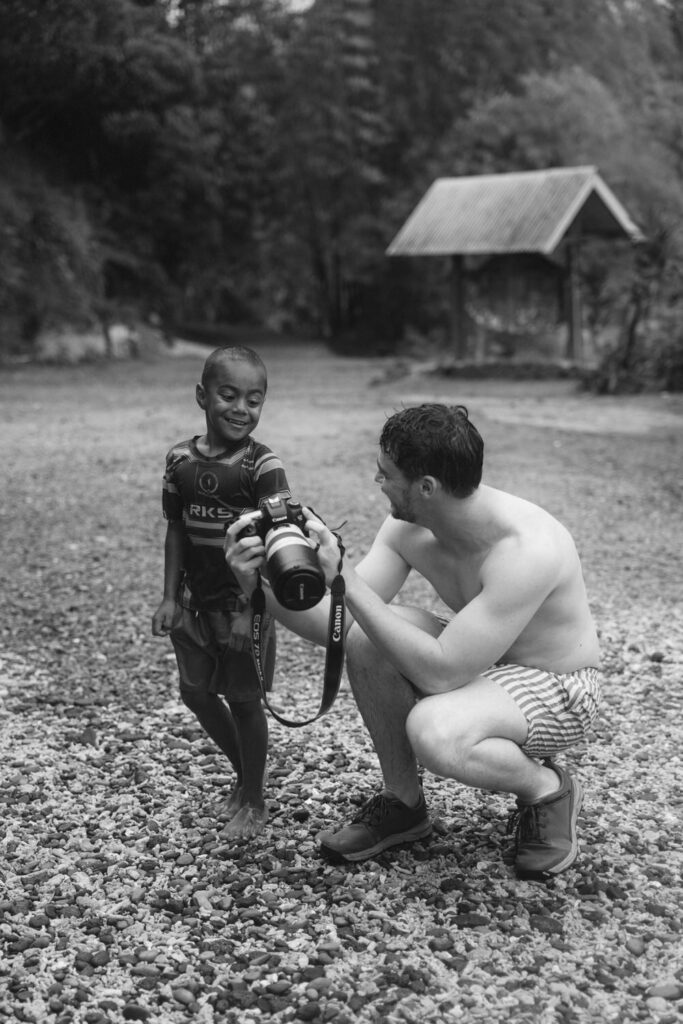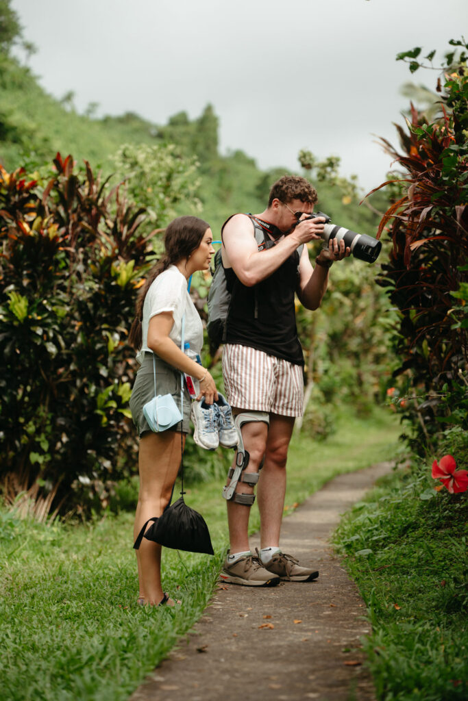 On day two, Marissa and Giacomo immersed themselves in the jungle. Giacomo is a huge bird watcher and wildlife enthusiast, and Marissa shares his passion, so Fiji was an absolute playground for them. Every few steps on the hike to Tavoro Falls, they stopped to photograph a bird, catch a lizard, or admire a tropical flower they’d never seen before.