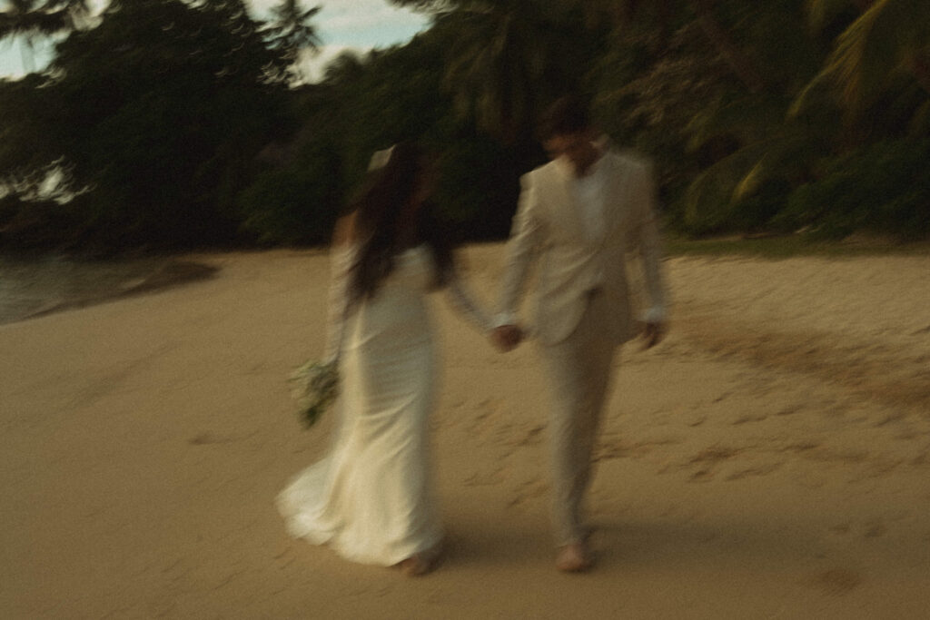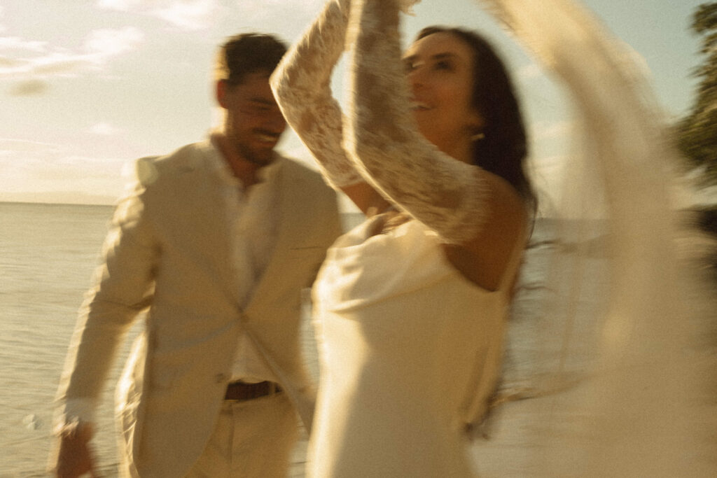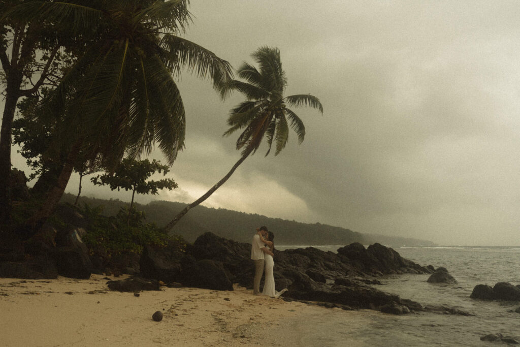 The tropical rain began to move in, but Marissa and Giacomo were here for it! Their last stop was one last beach – windswept and rainy, and absolutely gorgeous. They embraced every bit of romance movie energy, creating some of the most beautiful moments, holding each other as they splashed through the ocean. Marissa and Giacomo spent their elopement exactly how they wanted to – elegant yet untamed, adventurous yet intimate, completely theirs.