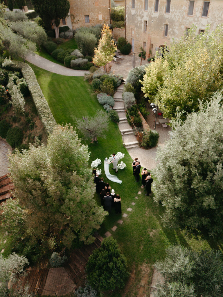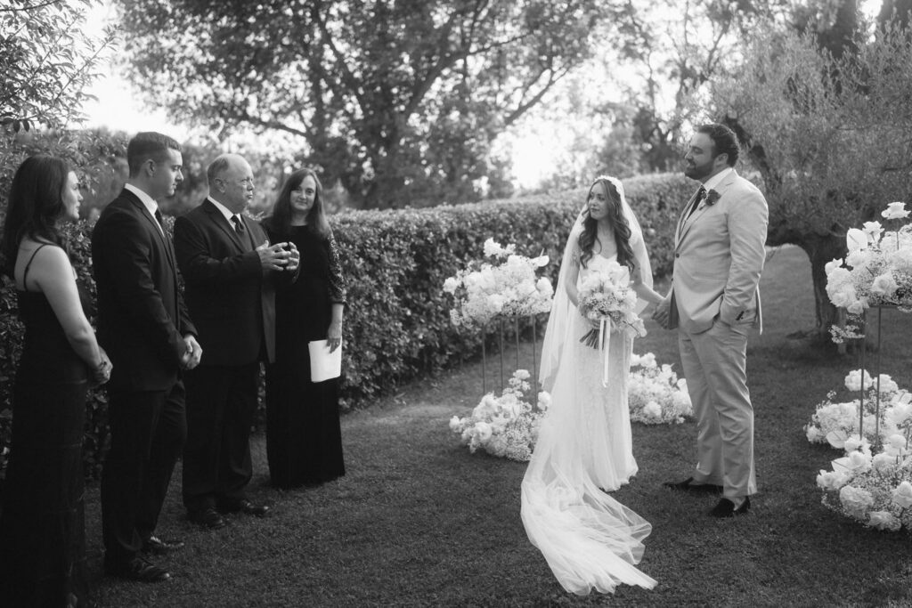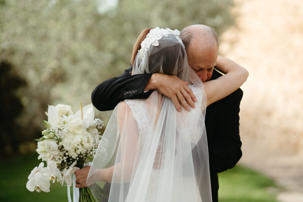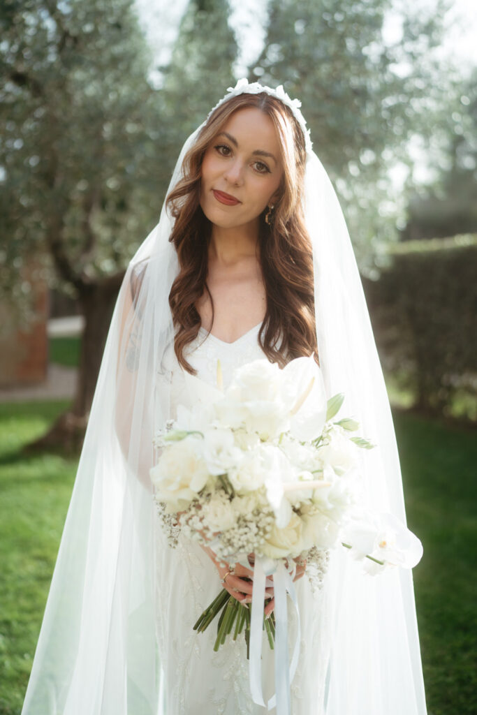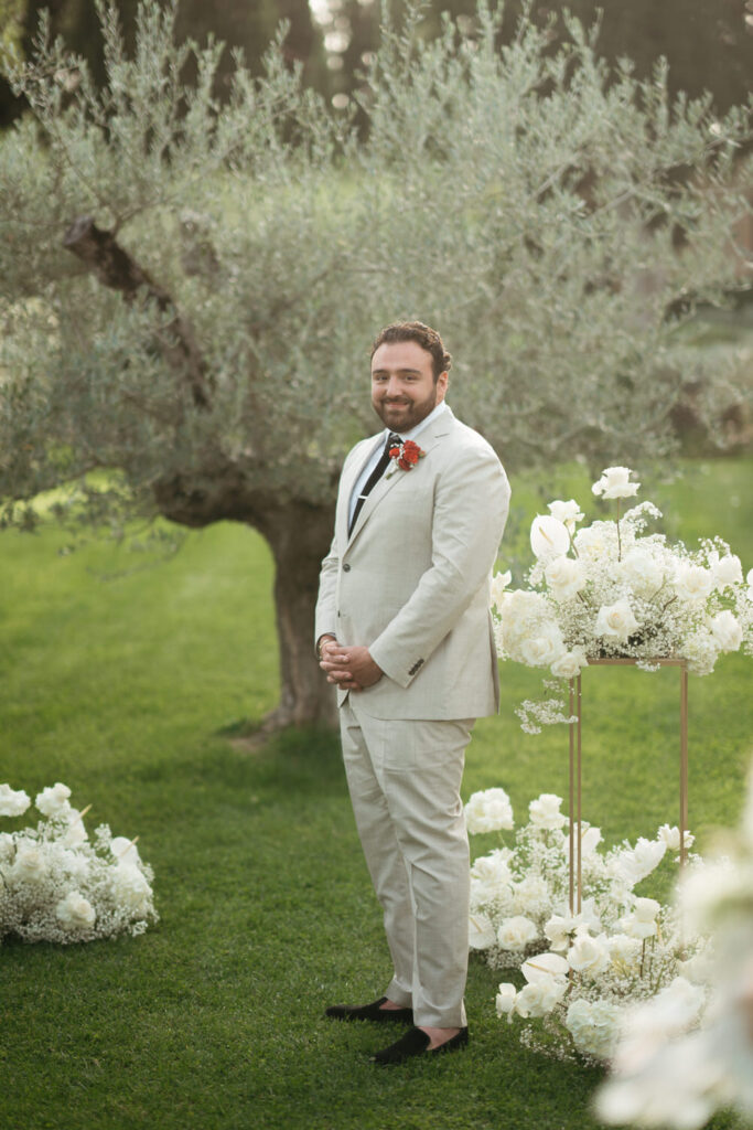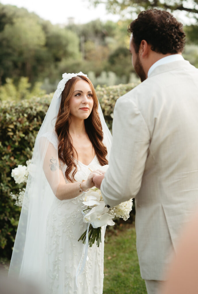 Then came the gorgeous ceremony with the soft Tuscan sunshine shining down on them, they joined hands in front of an old olive tree – we chose this ceremony location after assessing where the sun would be, and we felt an ancient olive tree was the perfect encapsulation of their Tuscany elopement and the decades of growth their marriage would enjoy.