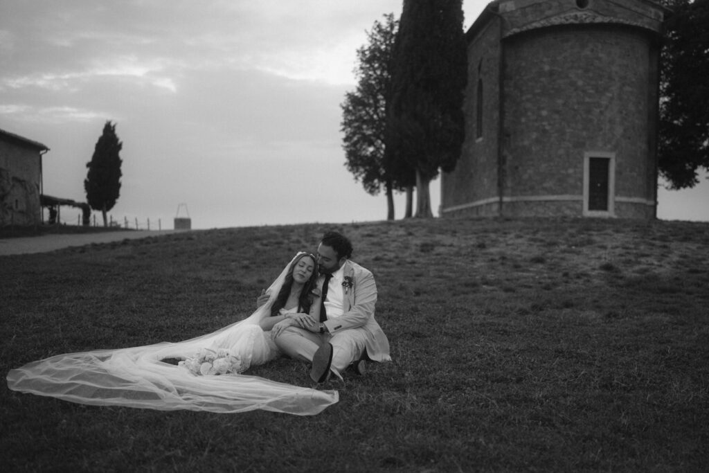 They took the first couple hours of their marriage to themselves as they explored a historic church overlooking the Tuscan countryside and exchanged heart-warming private vows that brought even more tears of joy down their faces.
