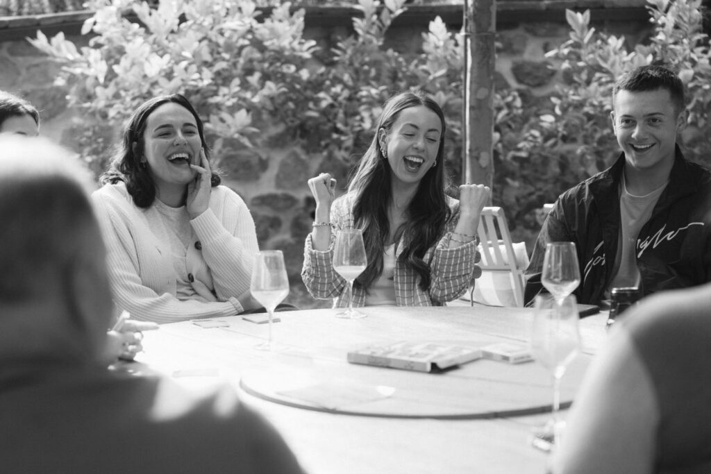 Their first day began with a beautiful illustration of how elopements can be tailor-made to fit your vision. They started with breakfast at La Moscadella, everyone sharing food and laughs before they stepped outside to honor their family tradition of board games. What followed was hours of laughter, finger pointing, arm crossing, and lots of love.