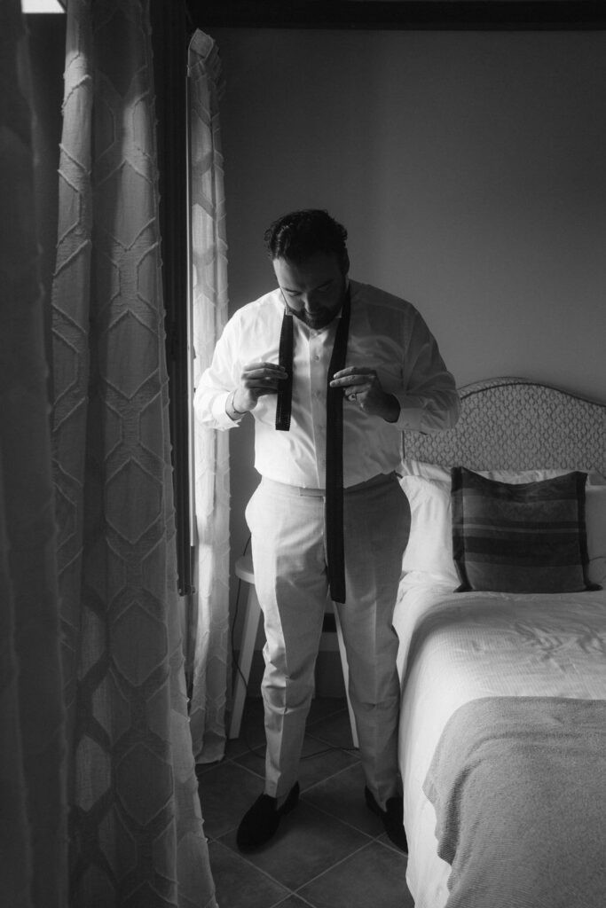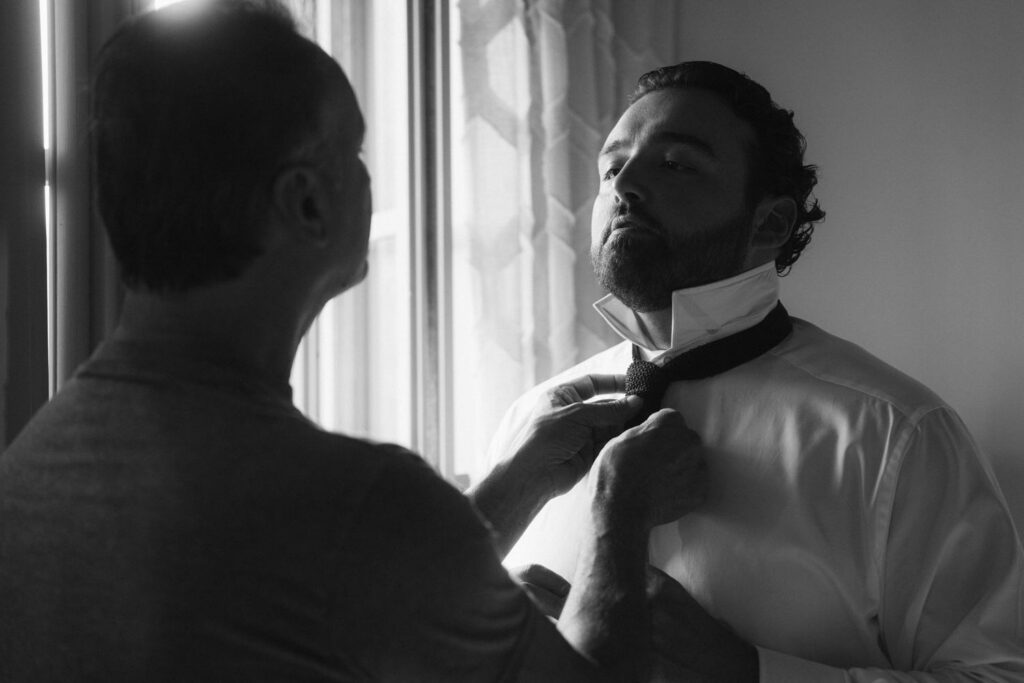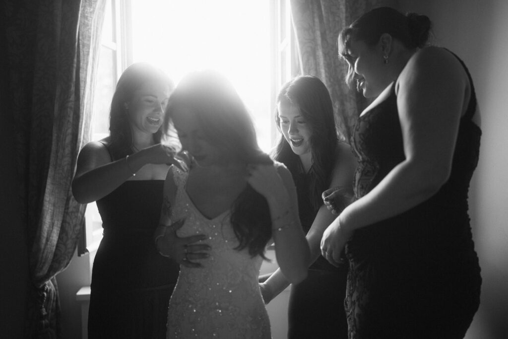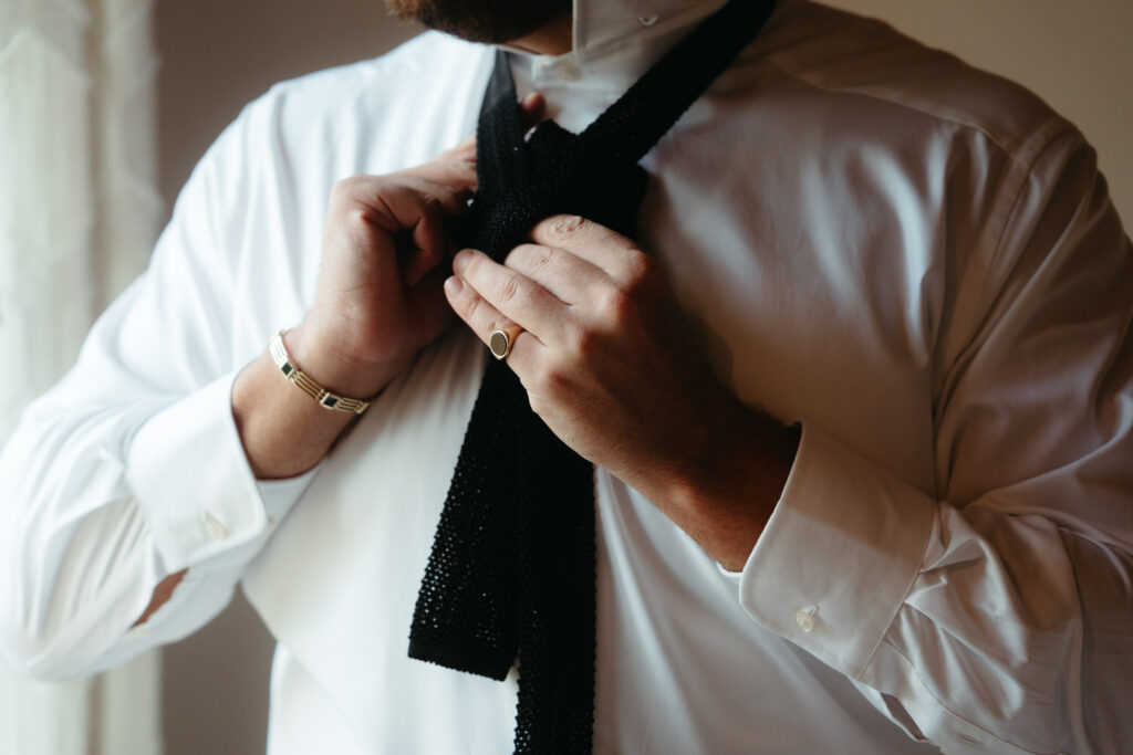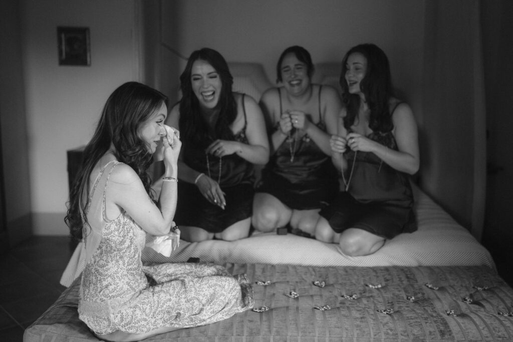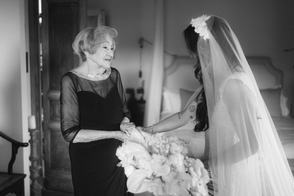 Then came time for getting ready with friends and family. After they prepared all of their elegant wedding details, they shared intimate moments, exchanged gifts, and had first looks with their loved ones.