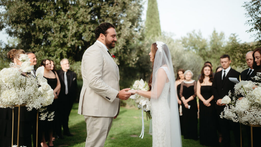 Leah and Rob came to us with their ceremony location already chosen at La Moscadella since it had special meaning to Leah from her childhood. We helped them with just about everything else, planning a two-day timeline that incorporated all the different meaningful moments they wanted – including moments with family, private vows, sibling letters, and capturing the Basilica of Assisi lit up at night.