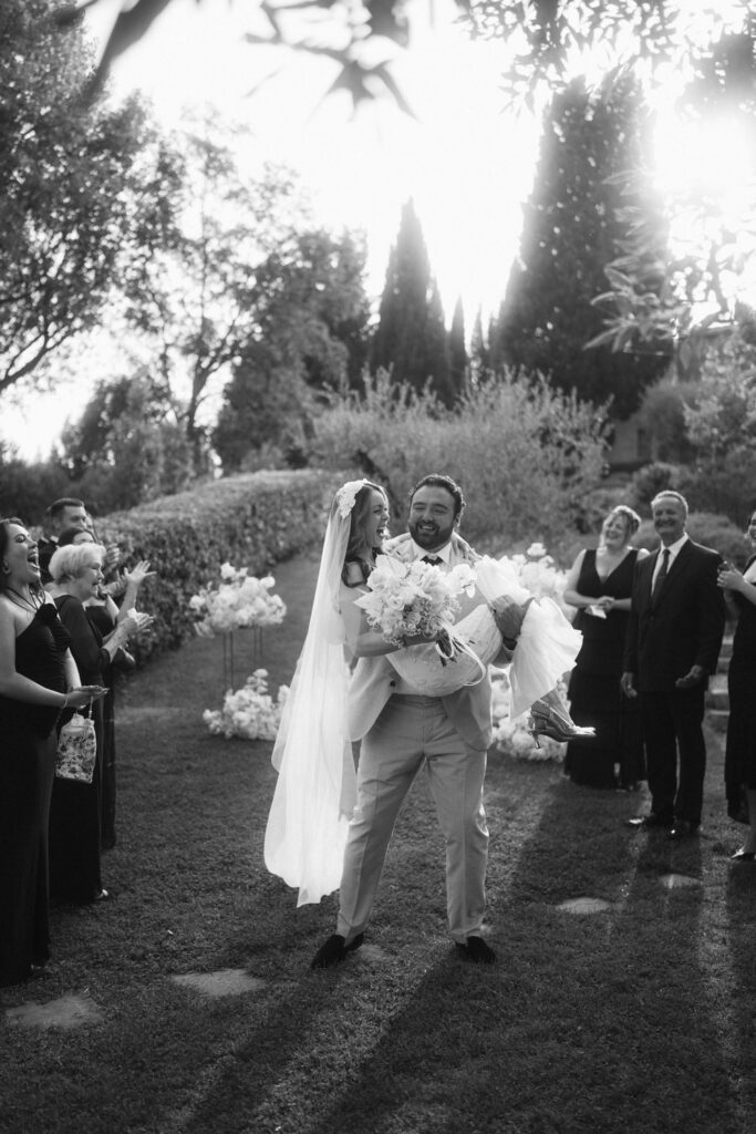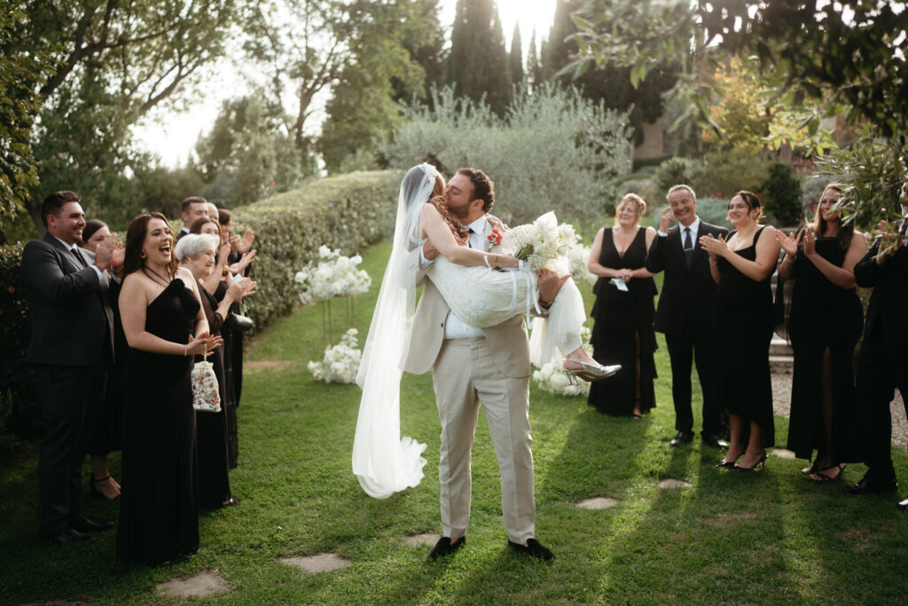 After Rob scooped Leah up like an Italian princess, they hugged their loved ones tight, popped champagne, and ate an outstanding Italian cream cake, before setting off on their own.