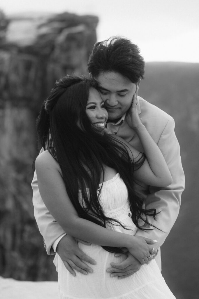 Kalen and Mark chose Yosemite because they love the outdoors and the mountains. They really loved the look of Taft Point at Yosemite and knew they wanted their engagement photos there.