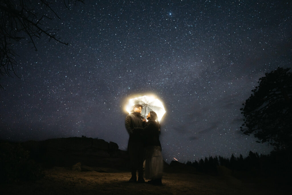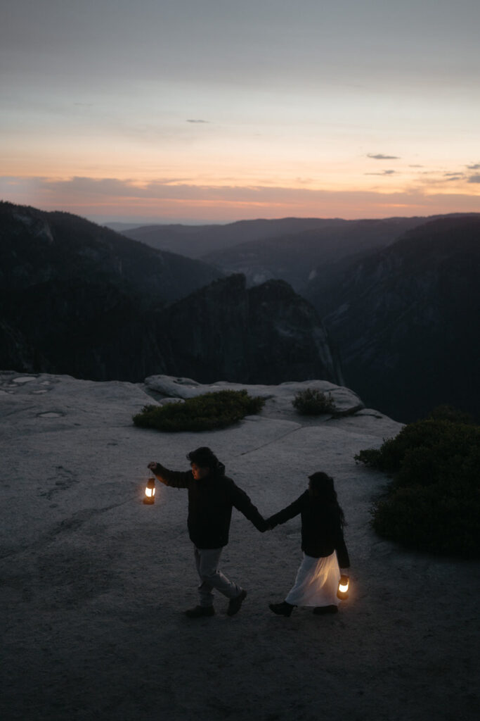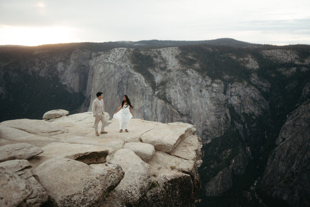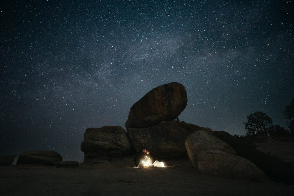 Another outfit change and we hiked out to Taft Point, where we captured them safely on the edge of the cliff (always keeping couples 5 feet away from the edge) with the massive Yosemite Valley sprawling beneath them for some incredible photos. We stayed out for another couple hours to let the sky get nice and dark after sunset and captured a few gorgeous stargazing photos!