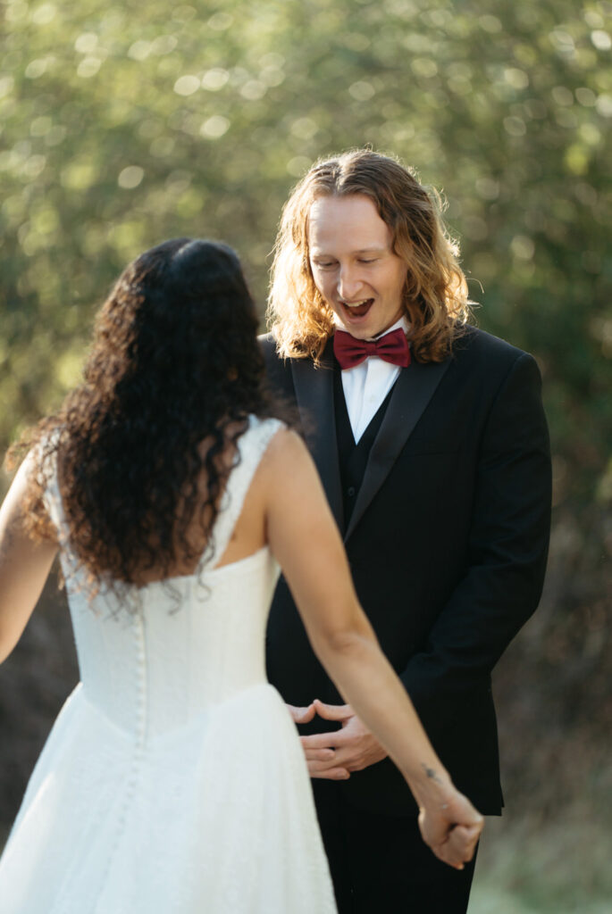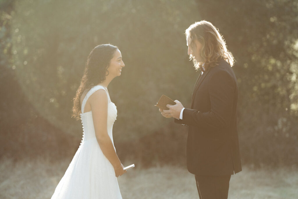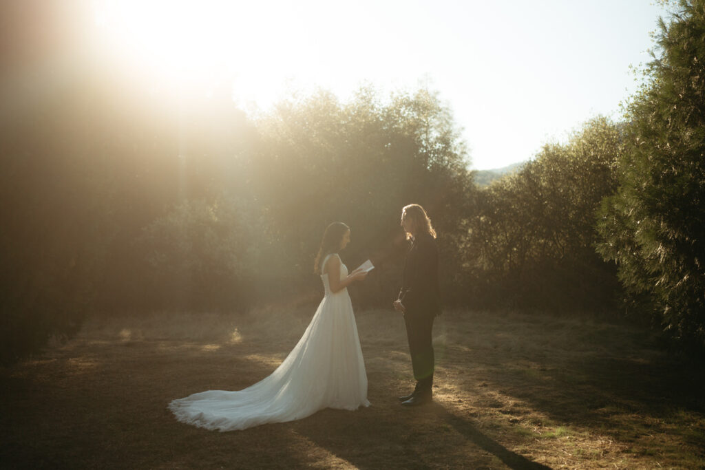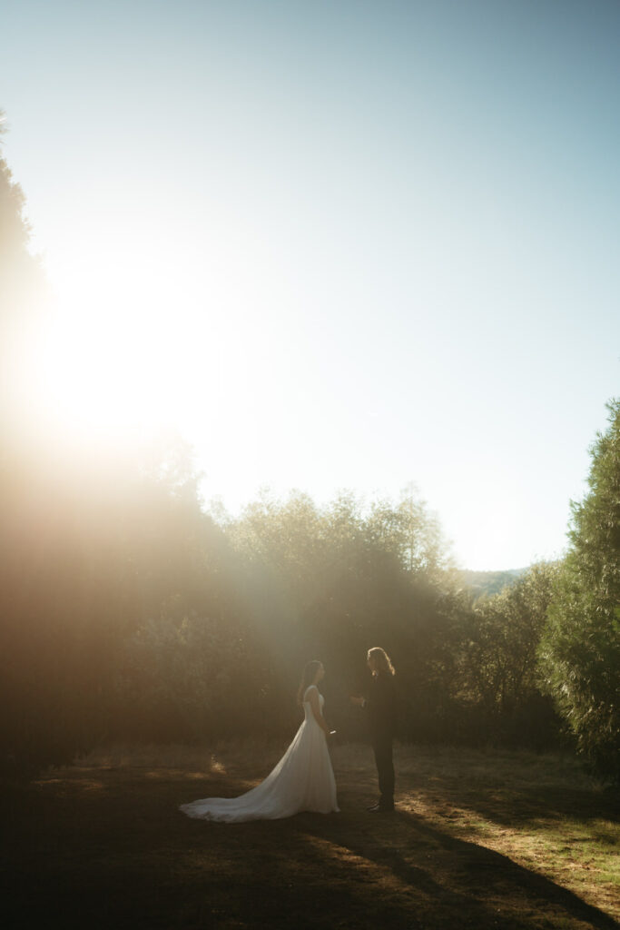 Their elopement day started right at sunrise with getting ready in their separate cabins, then a beautiful first look on the property and private vows as the sunrise broke through the trees. It almost felt like we were back in Tuscany, it was beautiful and such a holy and precious moment. We’re so glad they got to say their vows in a private way that was perfect for who they are.