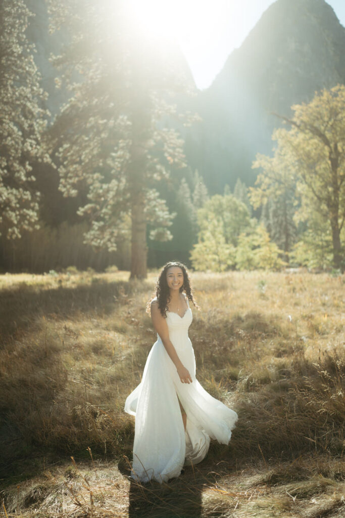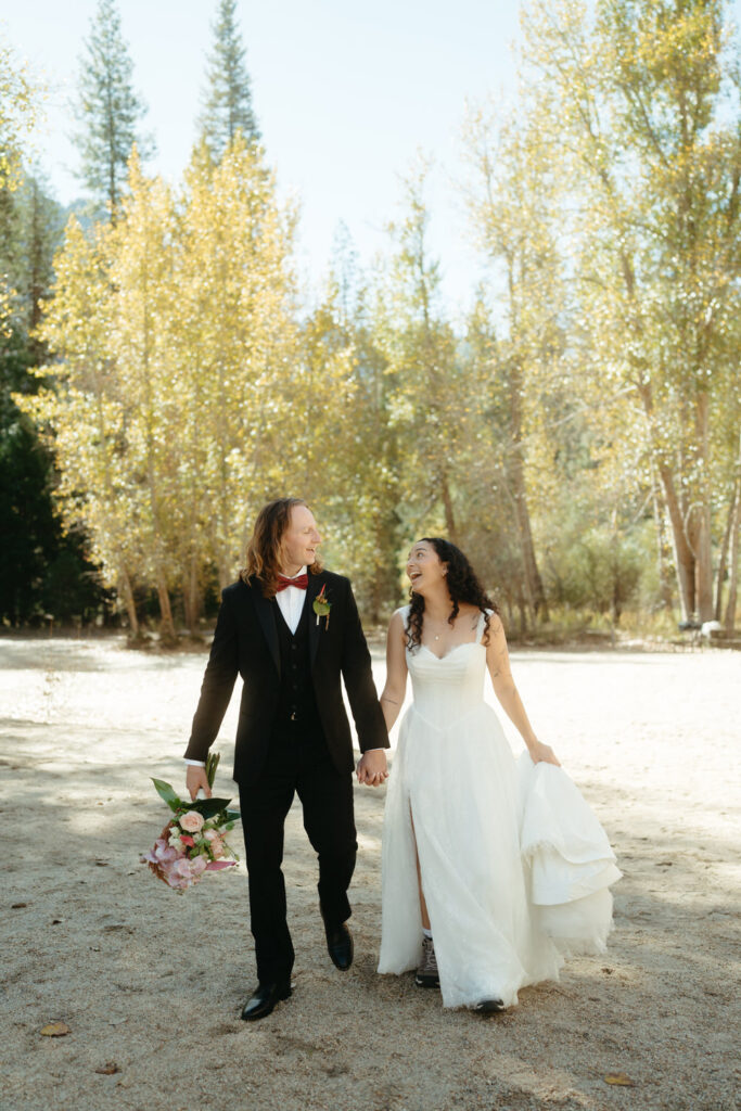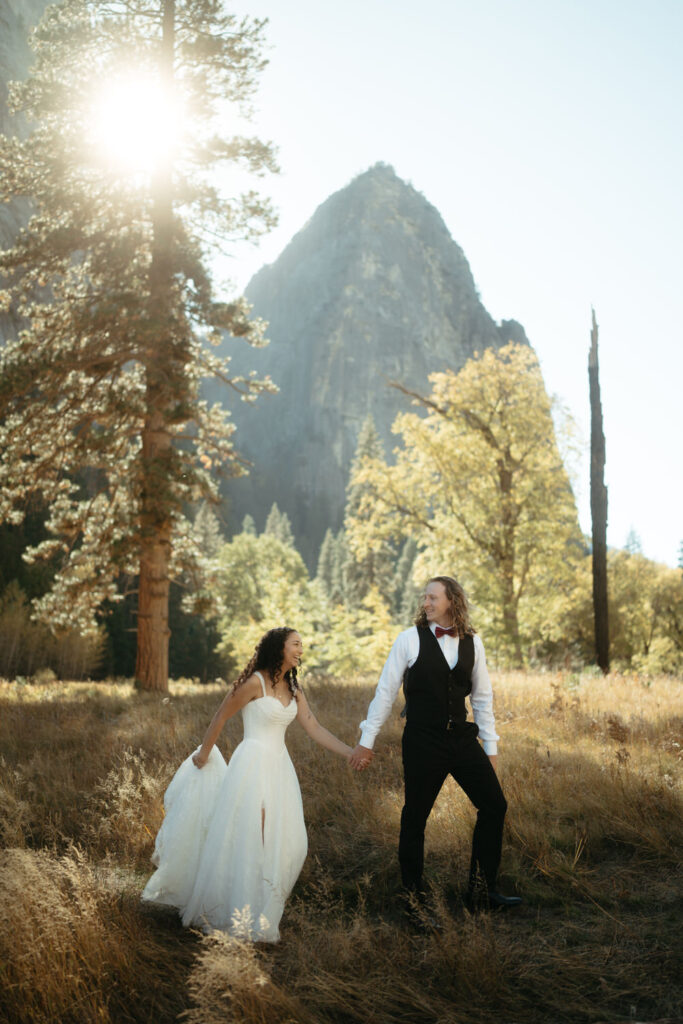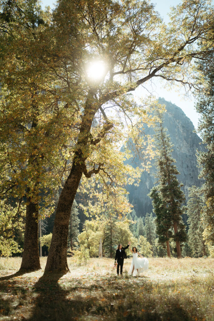 After splitting up for them to share a meal with their family, we met up again at the gorgeous El Capitan Meadow. They frolicked around, danced in the leaves, danced in the sunshine, laughed and enjoyed their first moments of marriage in this beautiful place with the towering mountains on either side of them.