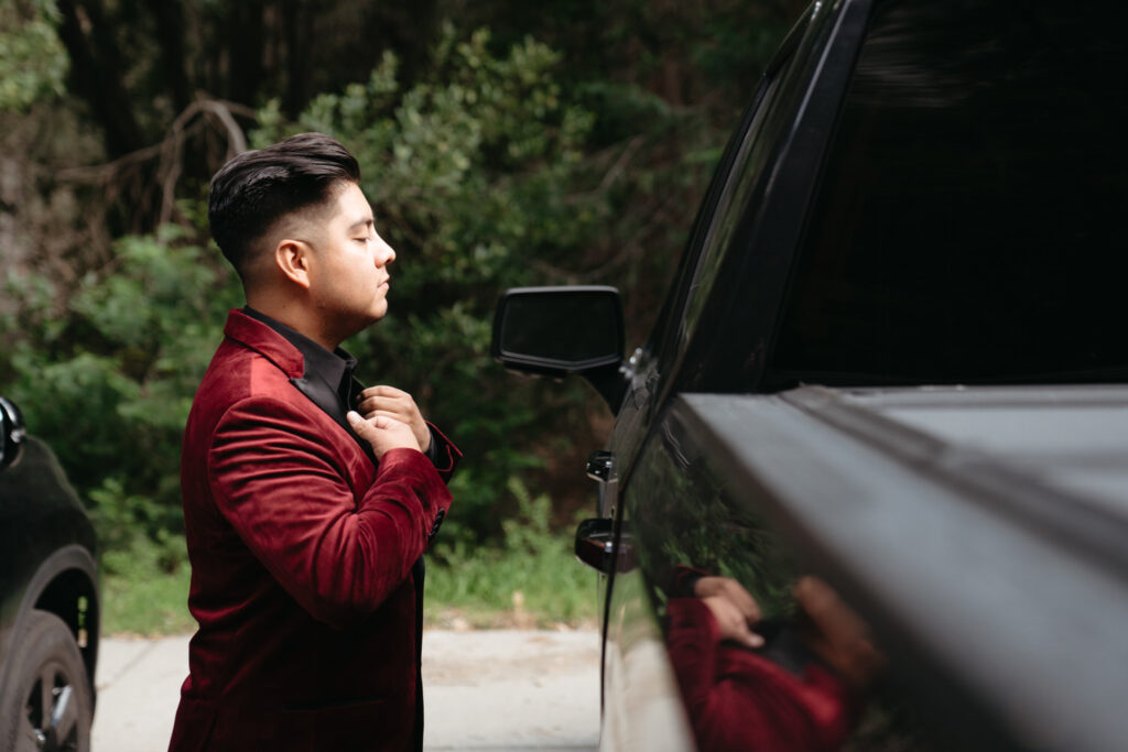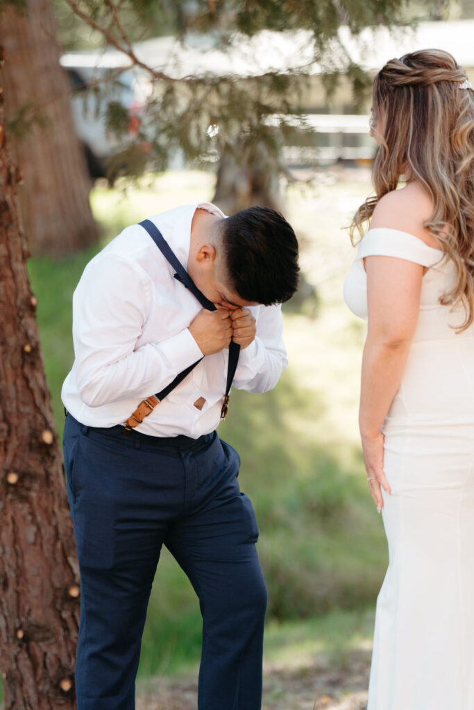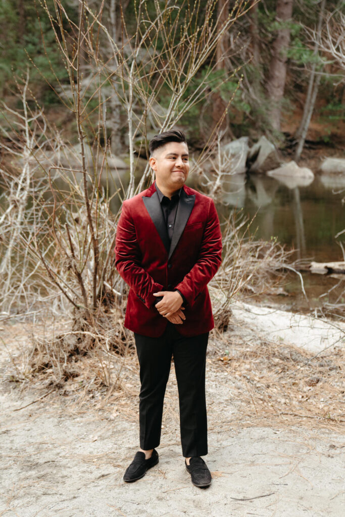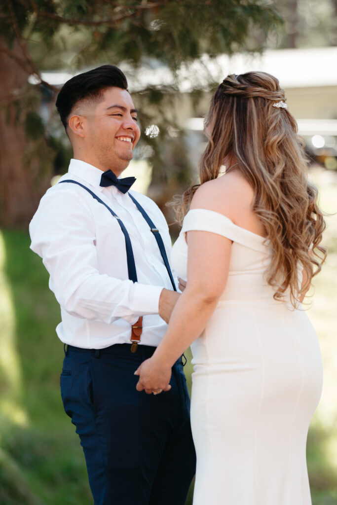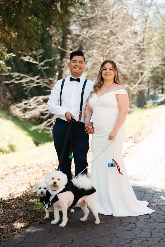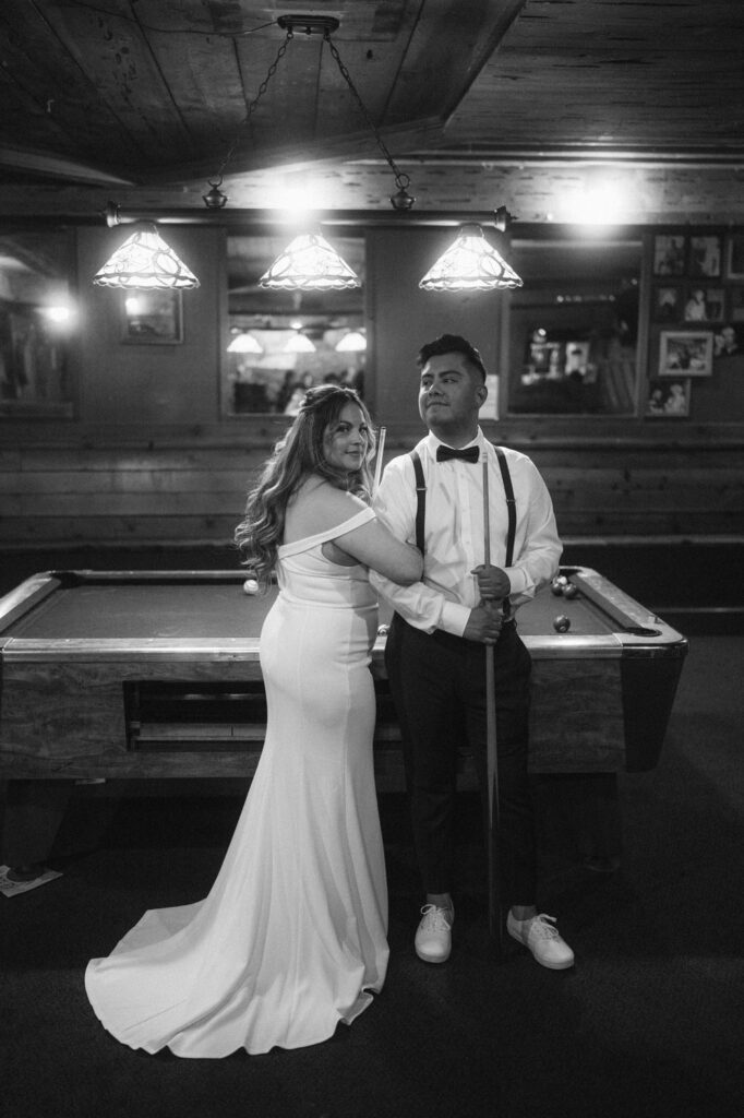 Their elopement day unfolded beautifully thanks to all the planning. They started with a first look outside their hotel, one of us photographing a close-up of Victor’s reaction, the other capturing a full-body shot of the moment. Then of course some pictures with their beloved dogs. While stopping in town for a quick lunch they played some spontaneous pool at California’s oldest operating saloon, totally unplanned and so awesome! One of those go-with-the-flow moments that can only happen when you’re eloping.
