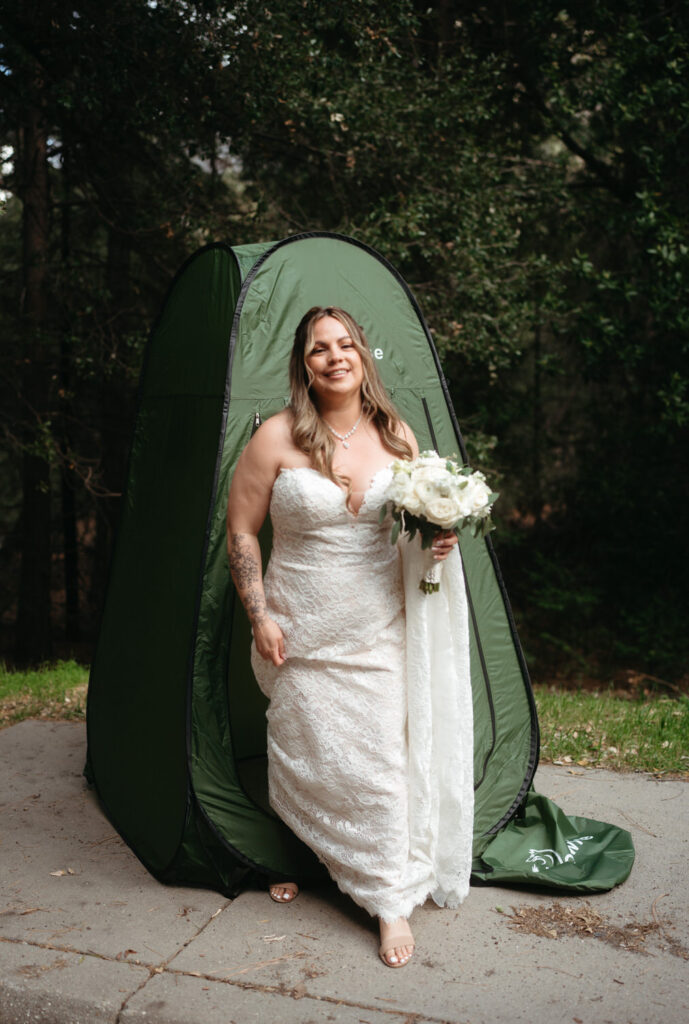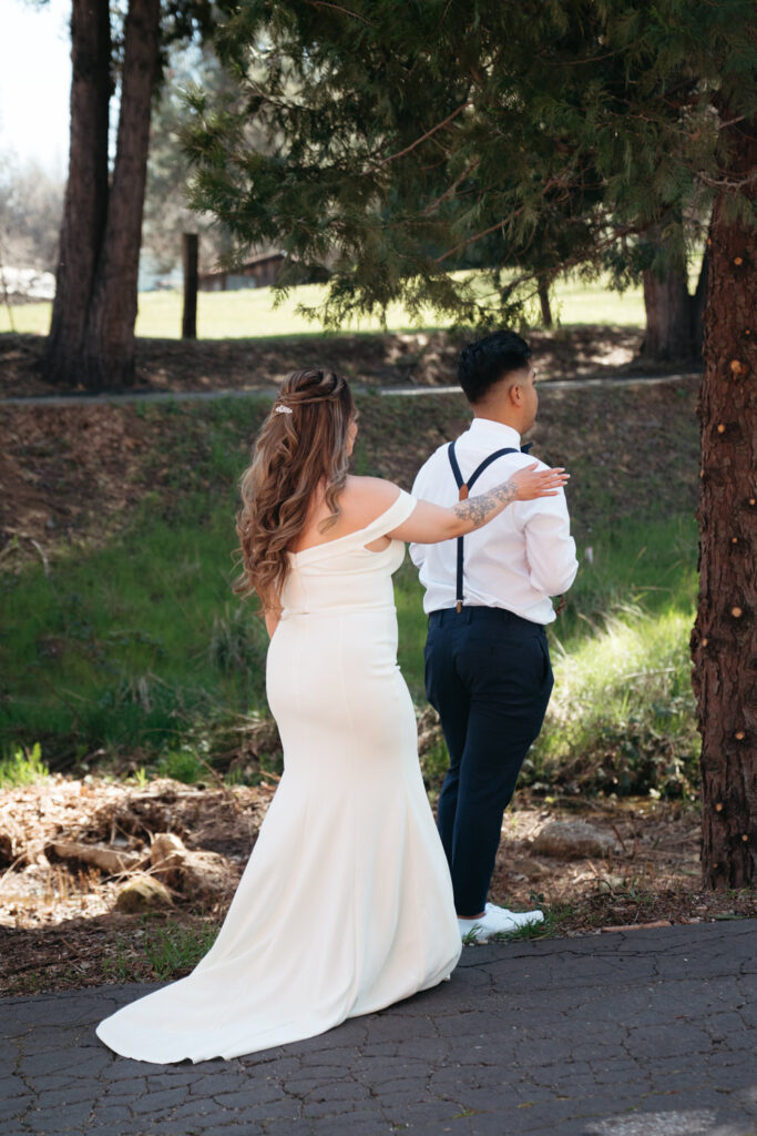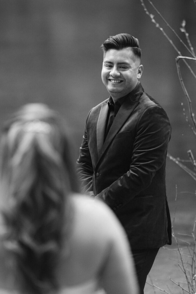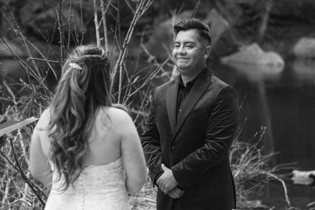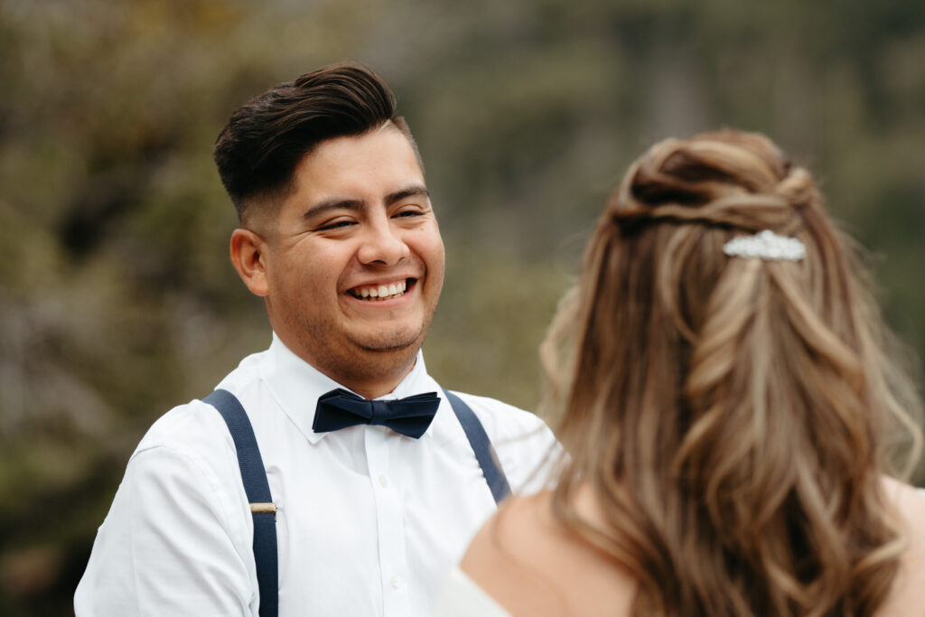 They headed to Cascades Picnic Area where they changed into a different dress and suit as their guests arrived. (Having two outfits for your elopement is the coolest!! Especially if you’re having a two-day elopement.) Micah photographed Amanda’s mother walking her down the aisle, and Sammie captured Victor’s emotional reaction during their second first look, just as beautiful as the first one. Victor’s friend performed a beautiful ceremony, and they said goodbye to their guests, but their guests had no idea what was about to happen next!