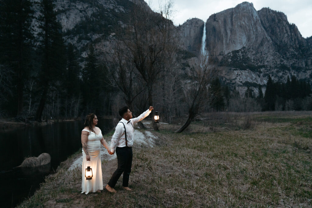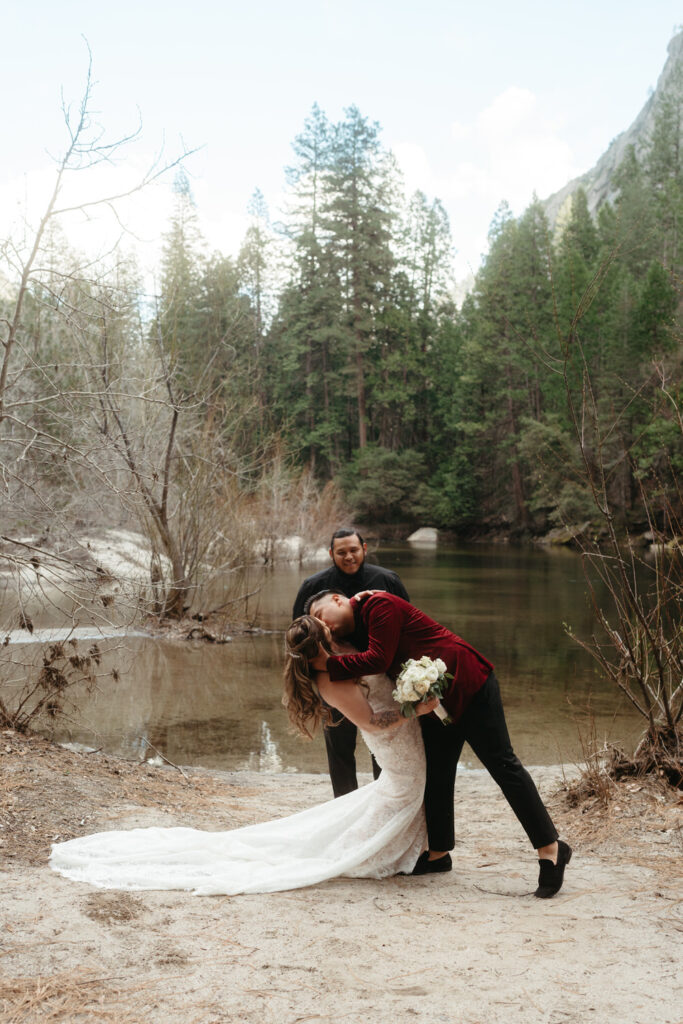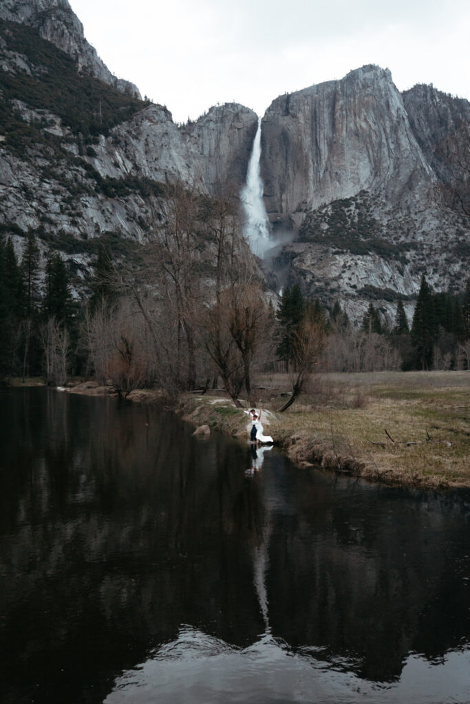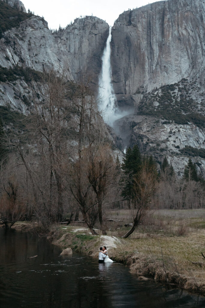 Amanda and Victor had told us from our first planning call they wanted to get in the water, so we’d scouted the perfect spot. They took the leap not just into marriage, but into the freezing cold Merced River with gorgeous Yosemite Falls in the background!