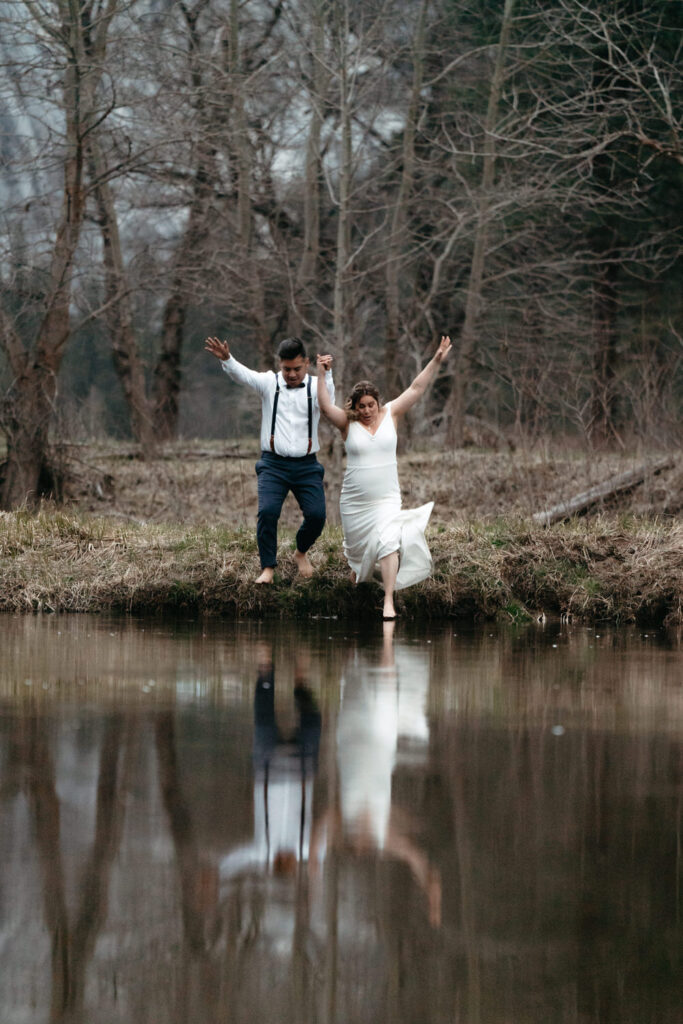 After drying off, they went back to their Airbnb to shock their guests with the video of them jumping in the river and celebrate the night away. This epic moment perfectly captures what makes elopements so special: the freedom to create an adventure that’s authentically you!