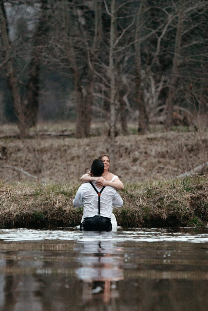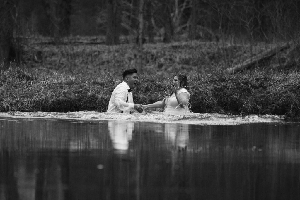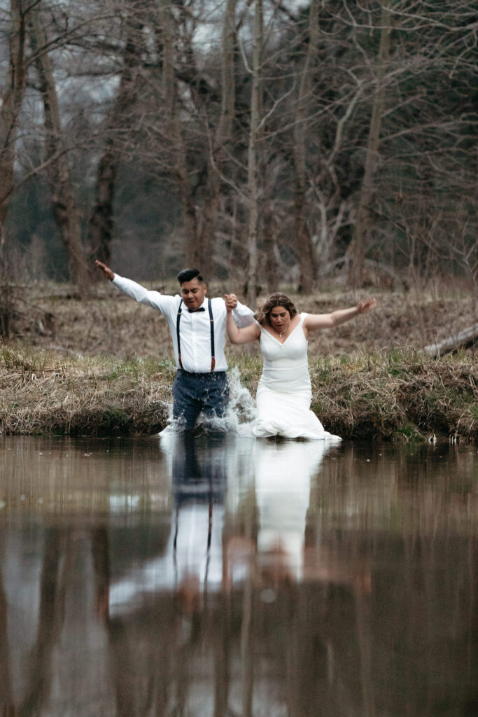 We’ll never forget watching them grab hands with nervous excitement and whoop for joy as they took the plunge into the water and into the rest of their lives together. Sammie got up to her waist in the freezing water to get close enough for the with her 70-200mm lens, while Micah stood on a bridge to capture photo and video with the waterfall in the background as they jumped.